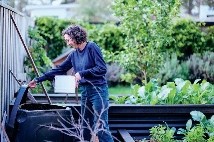 Among the open garden program is Kirsty and Bart Whitehouse’s Burnside property – a modern twist on permaculture, where native plantings attract birds and bees, veggies thrive in raised beds, and a netted orchard over ows with fruit (and is home to a happy ock of chooks).