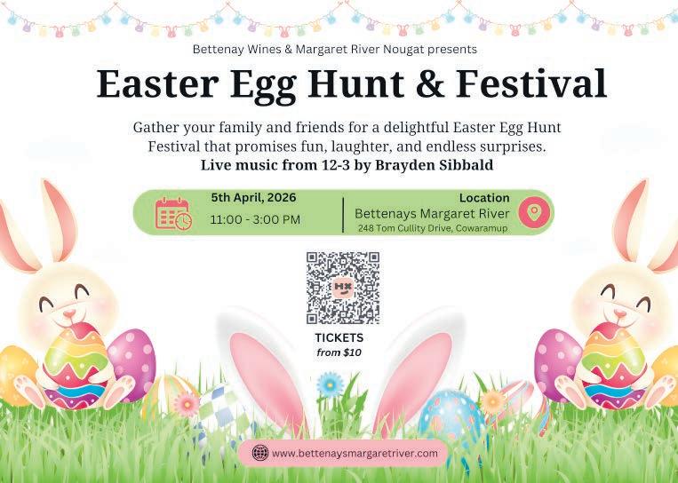Bounce on down to Bettenay Wines & Margaret River Nougat Company for an egg-stra special Easter Egg Hunt from 11am to 3pm on Sunday April 5.