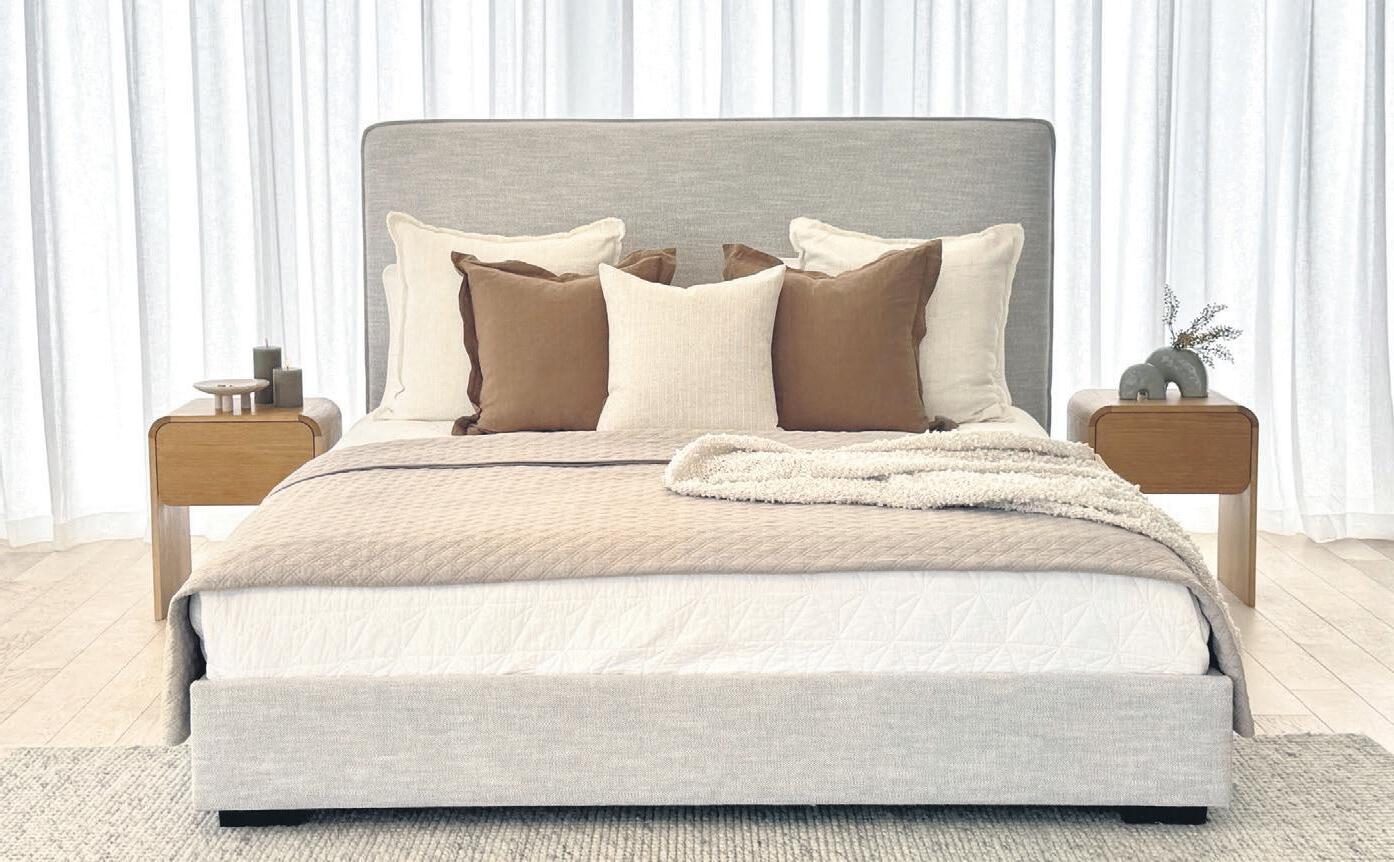 The Orlando Bed in Natural features a unique pillow-style headboard with rounded corners, offering superb comfort and support for reading, lounging, or Netflix in bed. Its neutral colour scheme and