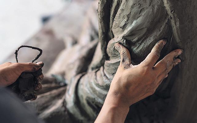 The Figure’s surface is built up & then refined. Reference points & lines placed where needed. Tools softly tapping and carving, weaving courage & hope in with the clay slip. Profiles no more, the rounded form is emerging.