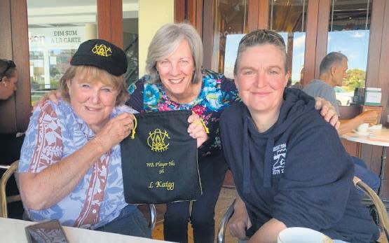 Sharon and Val receive the honour for their mum and grandmother, Lily Kaigg, from Australian cricketing legend, Jen Owens. Images supplied.