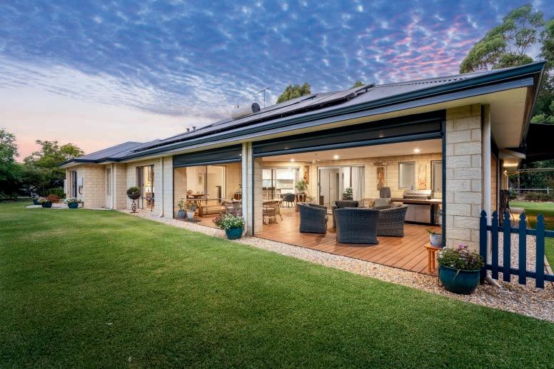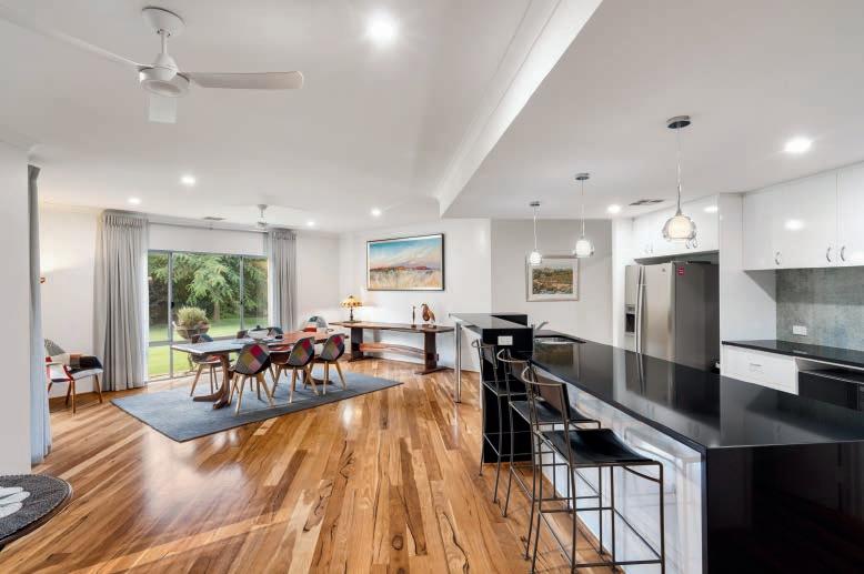 Set on a magnificent 2,367sqm private landholding just moments from central Dunsborough, this distinguished residence blends rural tranquillity with everyday convenience. Designed for executive family living, it offers five spacious bedrooms, three bathrooms, and a triple garage A thoughtful floorplan provides both connection and separation, with a privately positioned master retreat featuring a luxurious ensuite and oversized walk-in robe. Multiple living zones include a dedicated theatre room, while light-filled interiors enhance the home’ s sense of space and calm The designer kitchen anchors the main living area, complemented by premium finishes, statement floorboards, and seamless indoor-