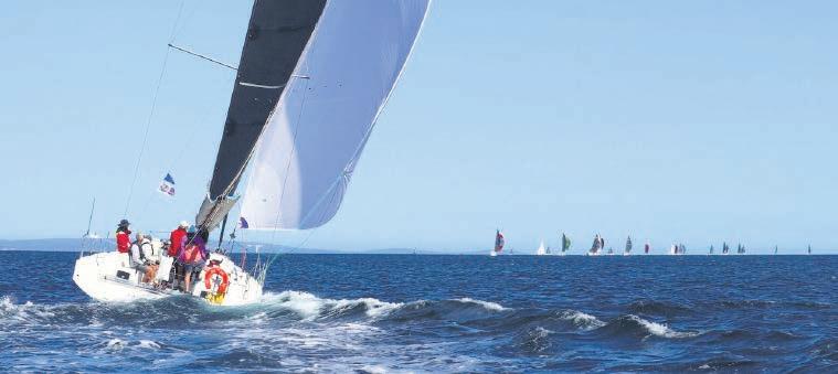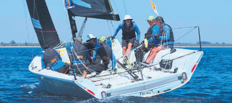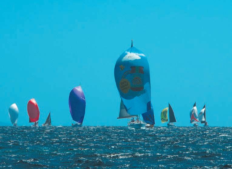 Spectators gathered along the foreshore were treated to a thrilling display of highspeed sailing as the Viper, VX One and Flying Fifteen fleets rounded a turning mark next to Busselton Jetty before racing back out to sea under full spinnaker—a colourful show of speed and skill.