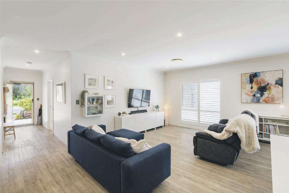 living area creates awarm,welcomingspacefor entertainingorrelaxingwithfamily and friends. private retreat, complete with plush carpets, qualitywindow furnishings,a spacious walk-inrobe with twinvanity and double shower Location: Close to schools,amenities andshopping