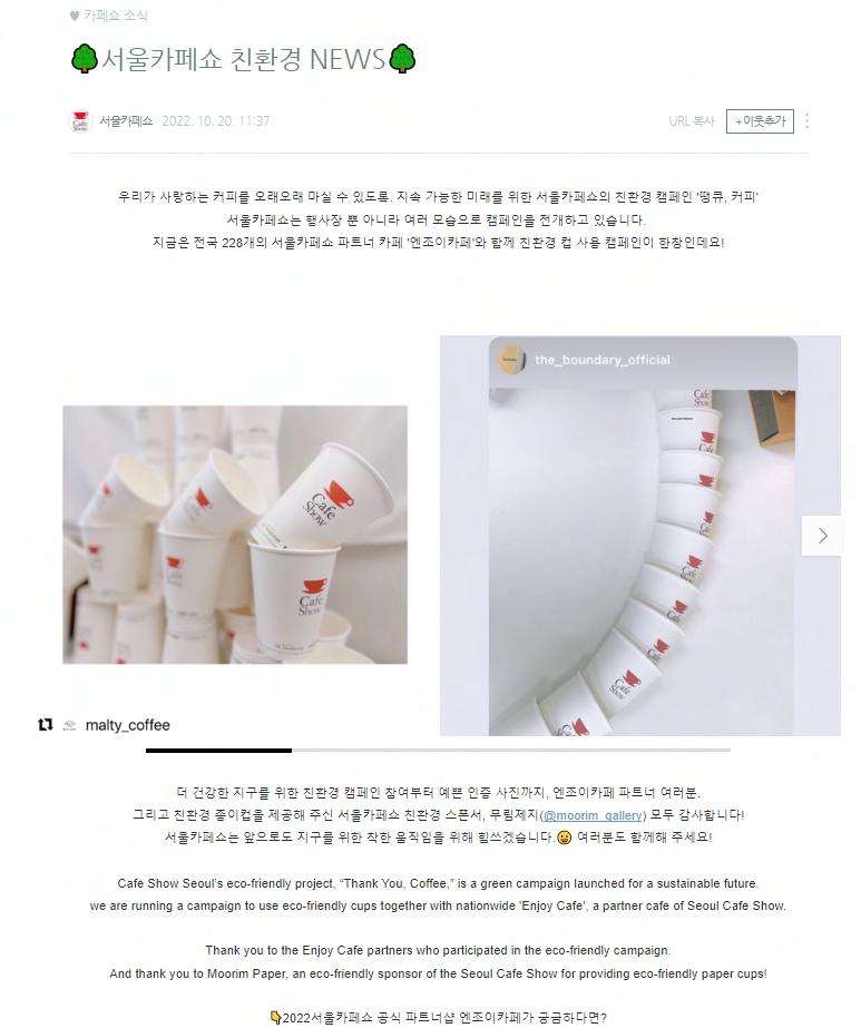Cafe Show Seoul led the global coffee industry by providing various programs which converge industry, knowledge, and culture such as a global coffee knowledge sharing platform 'World Coffee Leaders Forum', meeting the world's best baristas 'World Coffee Battle', a global coffee culture festival 'Seoul Coffee Festival', Hot & New showcase 'Cherry's Choice' and a way to find a new market 'Excellence Award' etc.