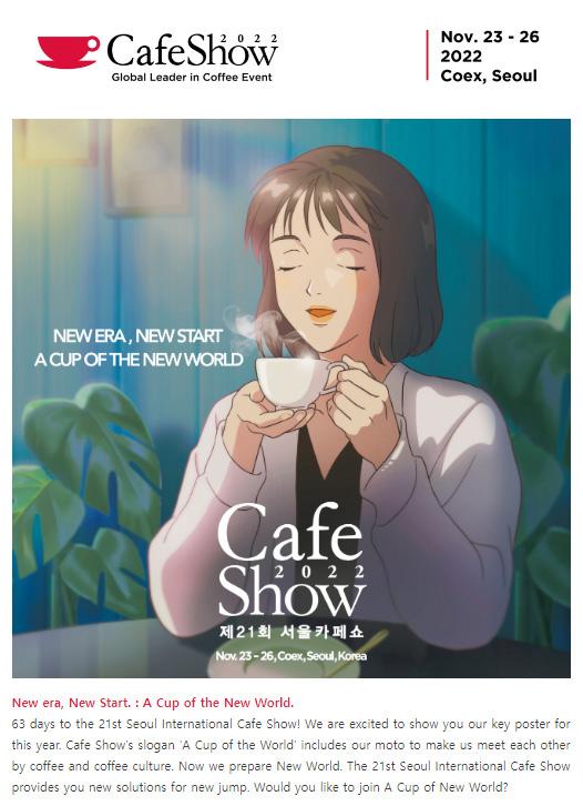 Seoul International Cafe Show, which started as Asia's first coffee exhibition in 2002 and grew into a leading global coffee business platform, proposed a new start for exhibitors and visitors under the theme of "New Era, New Start: A Cup of the New World" to mark its 21st anniversary.