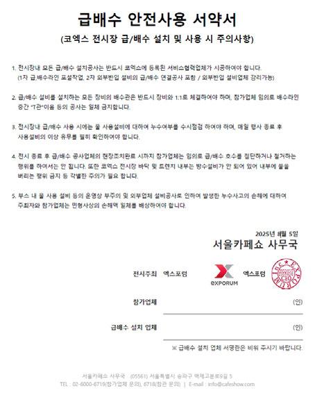 ■ 서울카페쇼 사무국은 전시기간동안 통로와 공동 면적과 공동 쓰레기통의 청소를 담당하며