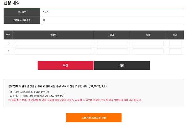 ▶ 주차권은 부스 규모와 관계없이 기한 내 신청 시 최대 4매 제공됩니다. (1일 당일권 × 4매)