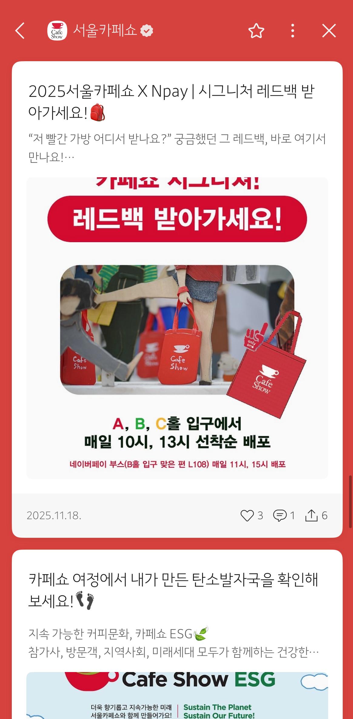 By utilizing eco-friendly paper materials instead of plastic structures, the festival significantly reduced the environmental footprint of the entire exhibition. Visitors enjoyed a lighter and more sustainable exhibition experience, naturally joining the meaningful movement to create a sustainable coffee culture. Moving forward, Cafe Show Seoul will continue to expand this model of practical and sustainable exhibition design.