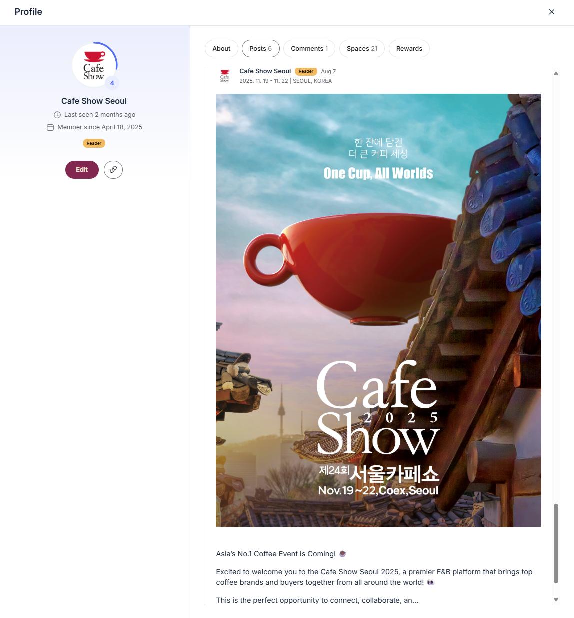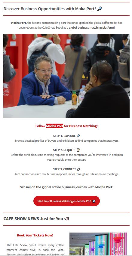 As a stage for business and a platform for culture, Cafe Show Seoul will keep building a bigger, and more connected coffee world.