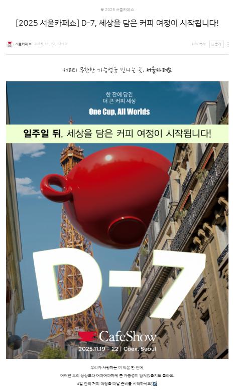 What began as a small cup has grown into a universal language that connects people around the world. At the center of this journey, Cafe Show Seoul continues to share the vision for the future of the global coffee industry.