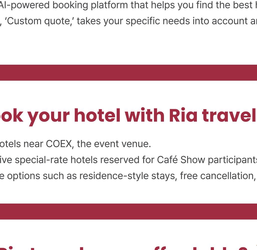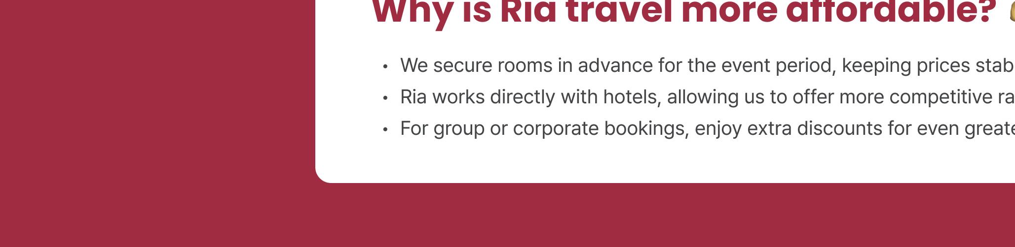 Partnered with Ria Travel for hotel promotions, bridging the venue and the city for an integrated visitor experience.