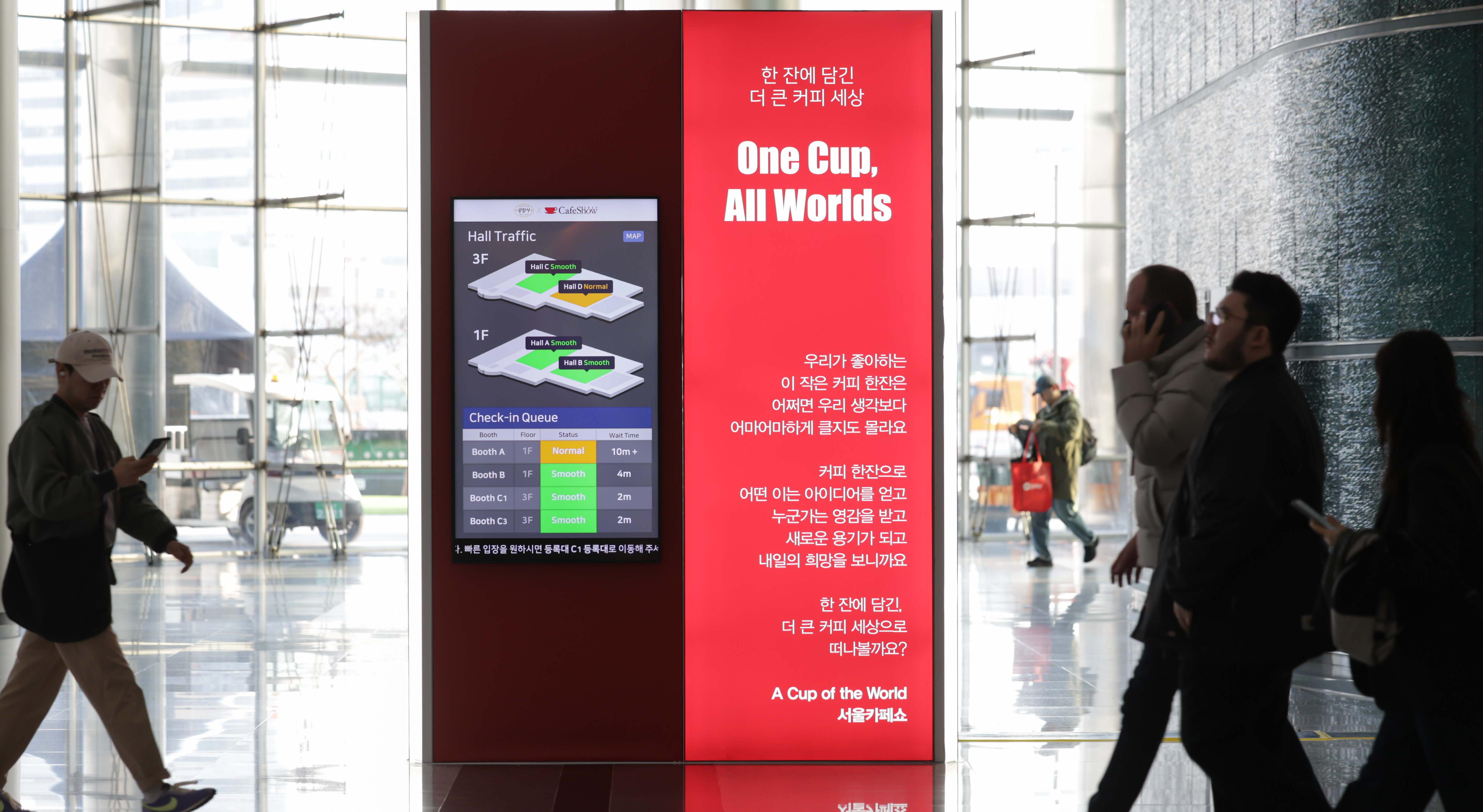 Collaborating with KTO, we launched the Cafe Show AI Guide to provide a smart exhibition experience integrating navigation, info, and ESG.