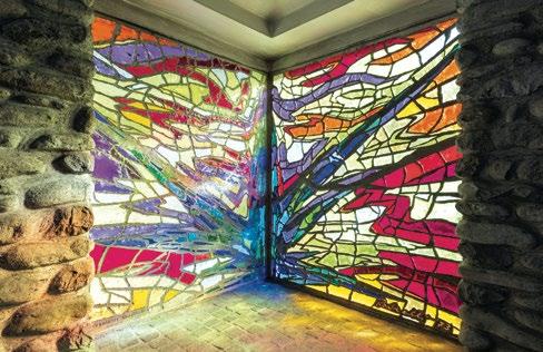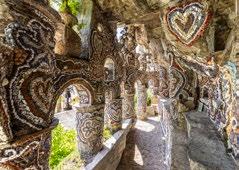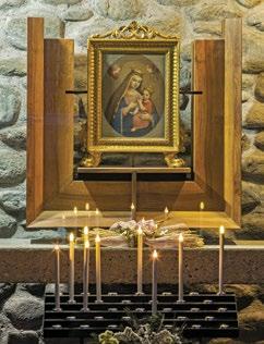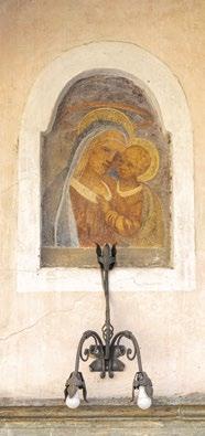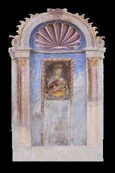 After leaving the church in Tiolo, the trail crosses the river to reach Grosio and its rich layers of history, from prehistoric times to the modern day. One of the more offbeat attractions here is the visionary creation of a man nicknamed the “Gaudí of Grosio”. The historical center is a true jewel. Rebuilt at the end of the 15th century, the beautiful church of San Giorgio [11] was substantially spared baroque restyling and still displays its wooden roof trusses, a large loggia on the front wall, splendid frescoes, lovely small stained glass windows, and a masonry altar. As regards Marian devotion, the most meaningful space is the chapel of the Virgin, frescoed in 1498 by a painter clearly inspired by Bramante.