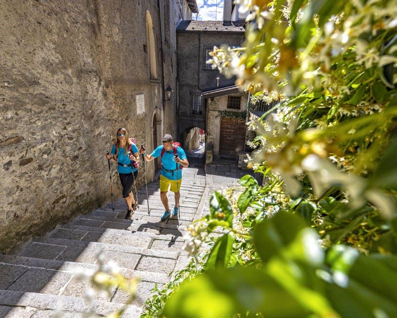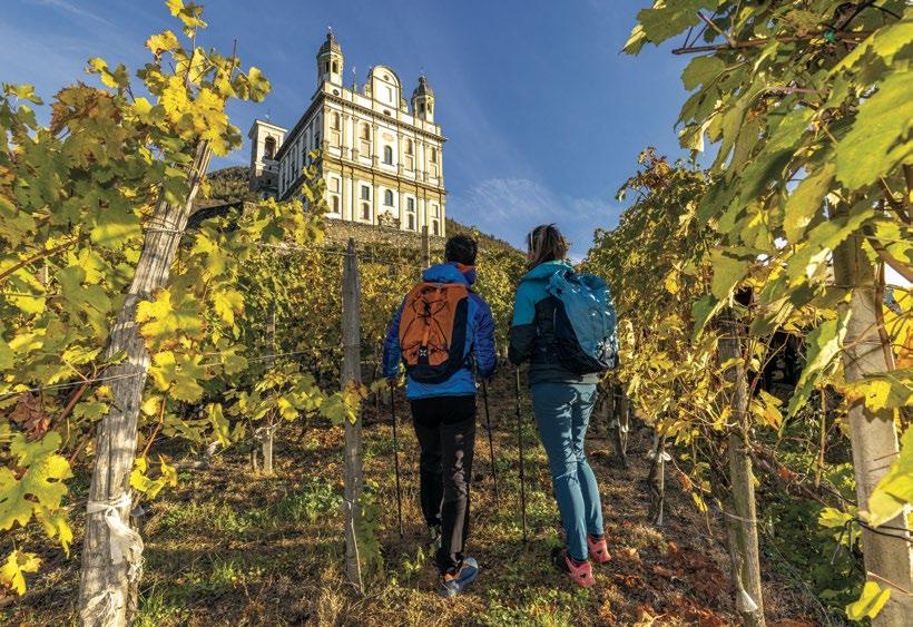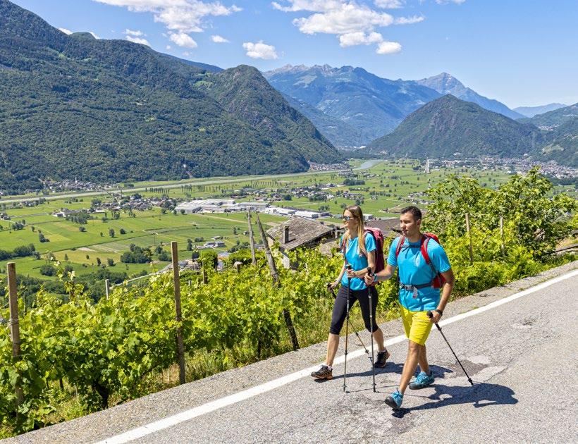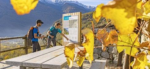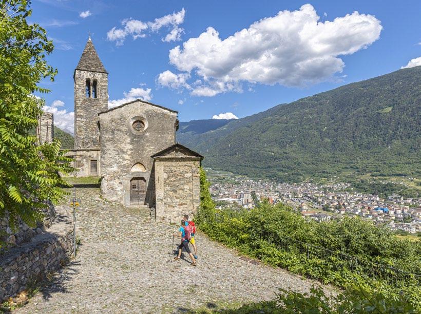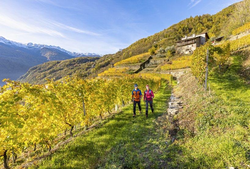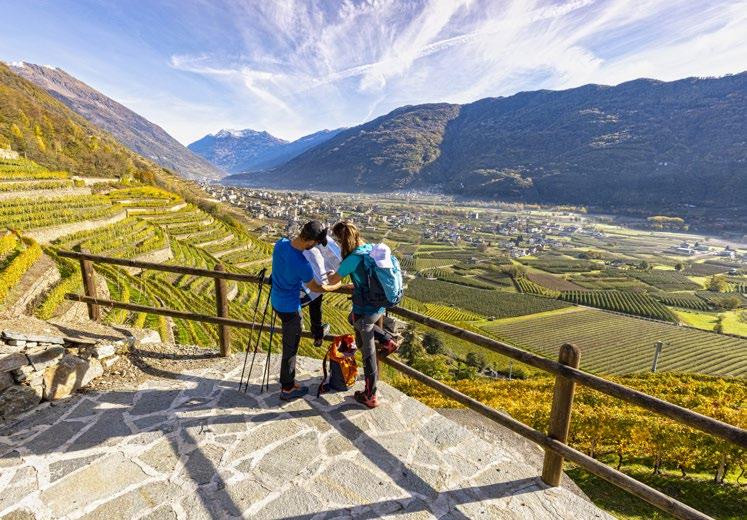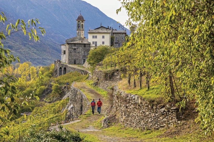 The itinerary follows the existing trail network and waymarked routes, including the Via dei Terrazzamenti, which passes through quintessential Valtellina landscapes with their terraced vineyards and a wealth of historic, religious, and civic buildings rich in symbolism. The Via Occidentale is best traveled in the period from March to November, while the Via Orientale, in the upper valley, is best traveled from June to October.