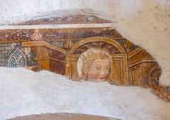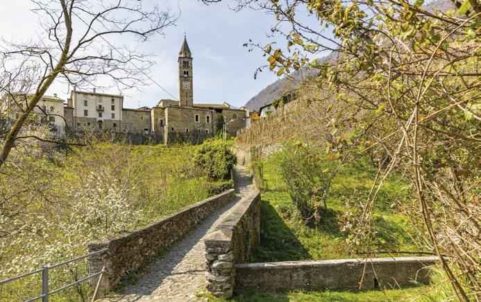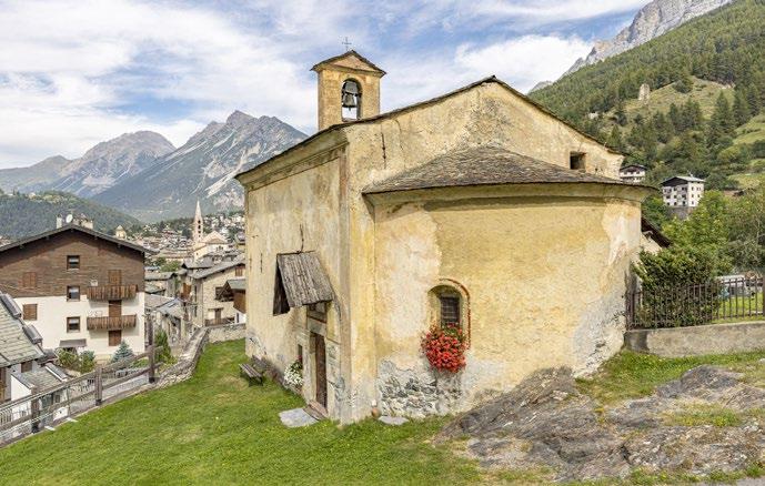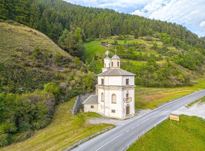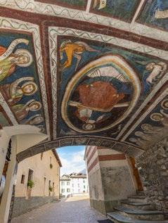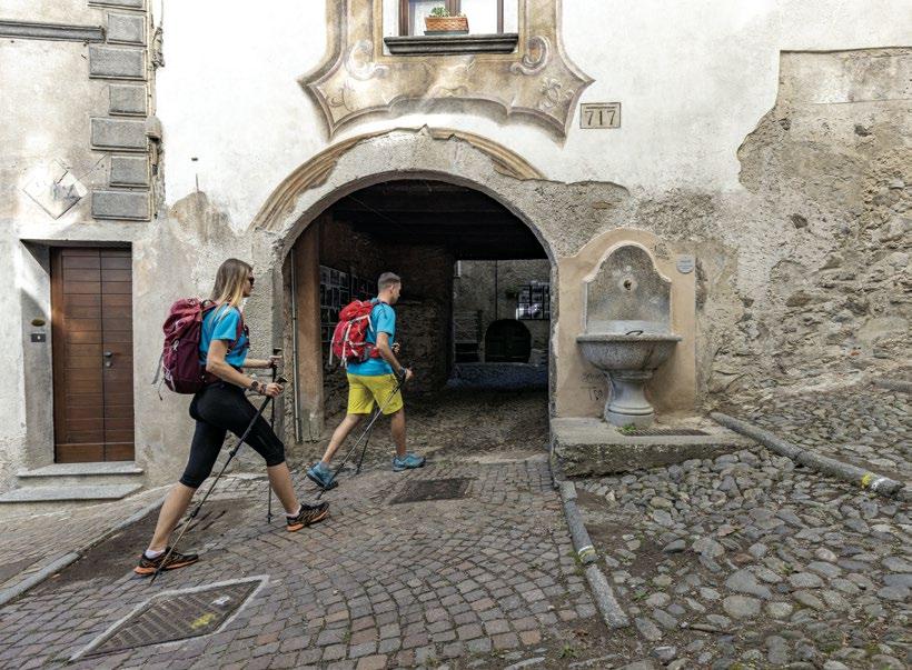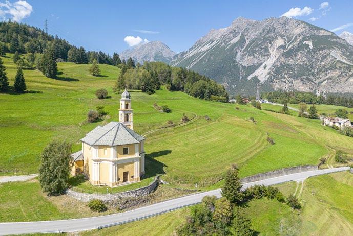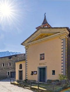 The Cammino now returns to the valley bottom and follows the left bank of the Adda to Tiolo, where you will find the parish church of the Visitation [10]. In the Middle Ages, it marked the start of a mule track up to the Mortirolo Pass. In the late 15th century the church was outfitted with