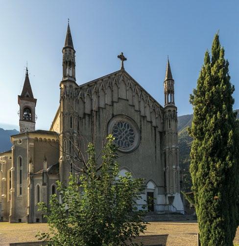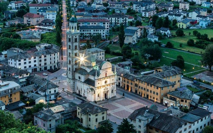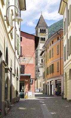 Before arriving at the Sanctuary of the Virgin Mary, you will want to pass through the old part of Tirano, entering via Porta Poschiavina to explore its aristocratic heart. The many patrician dwellings are severe in outward appearance but conceal unexpectedly lovely courtyards and interiors embellished with stuccowork and frescoes. Palazzo Salis stands out for its size and prestige. Many of the historical buildings in the center have been tastefully remodeled to house workshops, bookshops, cafés and wine bars, fine restaurants and typical trattorias, and accommodations for those who wish to drift off to sleep in the shadow of the bell tower of the parish church of San Martino. From there it is only a short walk to the modern bridge over the Adda and the new town, which developed in the 19th and 20th centuries along the tree-lined avenue. Standing at the end of it is the bell tower of the basilica of Tirano, the final destination for both sections of the Cammino Mariano delle Alpi.