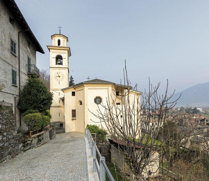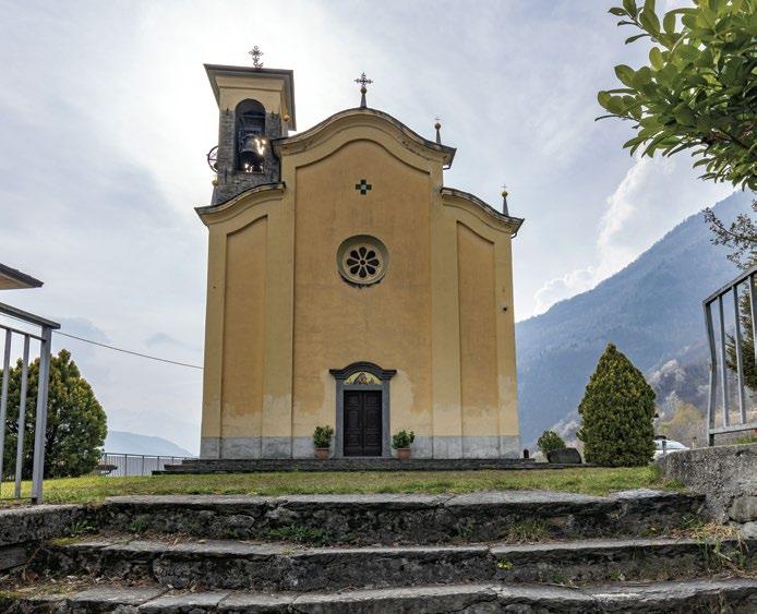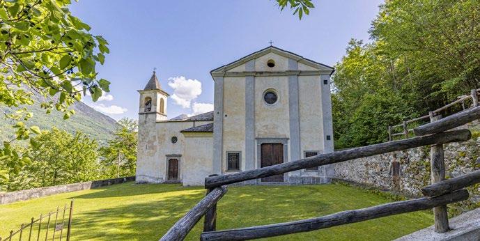Both sides of the valley are thickly forested in this section of Valtellina. Walking in the shade of the trees is a peaceful experience, far from the hustle and bustle of the modern world. From the stands of chestnut above the town, the old church of Sant’Alessandro continues its vigil over the inhabitants of Lovero, in spite of the fact that in 1825 its role as parish church was transferred to the church of Our Lady of Grace and the Assumption [15], which was built beginning in 1596 closer to the town center. Entering the “new” church, you will immediately be struck by its beauty, although it will take some time to fully explore its artistic marvels, from frescoes by Giovan Battista Muttoni (1701-40) to its 18th-century wooden furnishings, such as the pulpit, the organ case, and the choir stalls.