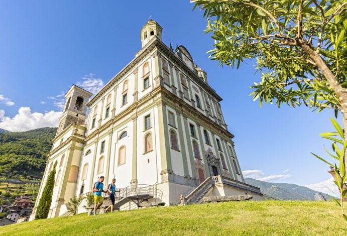 The Cammino Mariano delle Alpi (Marian Way of the Alps) pilgrimage route is an important religious, cultural, and touristic feature of Valtellina. Those undertaking the memorable journey on foot through the valley will encounter numerous shrines dedicated to the Virgin Mary as they make their way to the Basilica of the Madonna di Tirano – one of the
