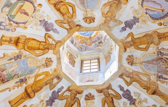 On September 29, 1504, the Virgin appeared to Mario Omodei of Tirano and indicated the spot where her sanctuary should be built. Far from the fortified burg, it stands at a key crossroads below the church of Santa Perpetua, which overlooks the valley from a rocky perch adorned by a patchwork of vineyards. The fresco of the Apparition (1513) on the wall of the left aisle provides an accurate view of the setting in the early 16th century. A long tree-lined avenue now joins the old town to the piazza of the basilica, a cultural rallying point for the entire valley.