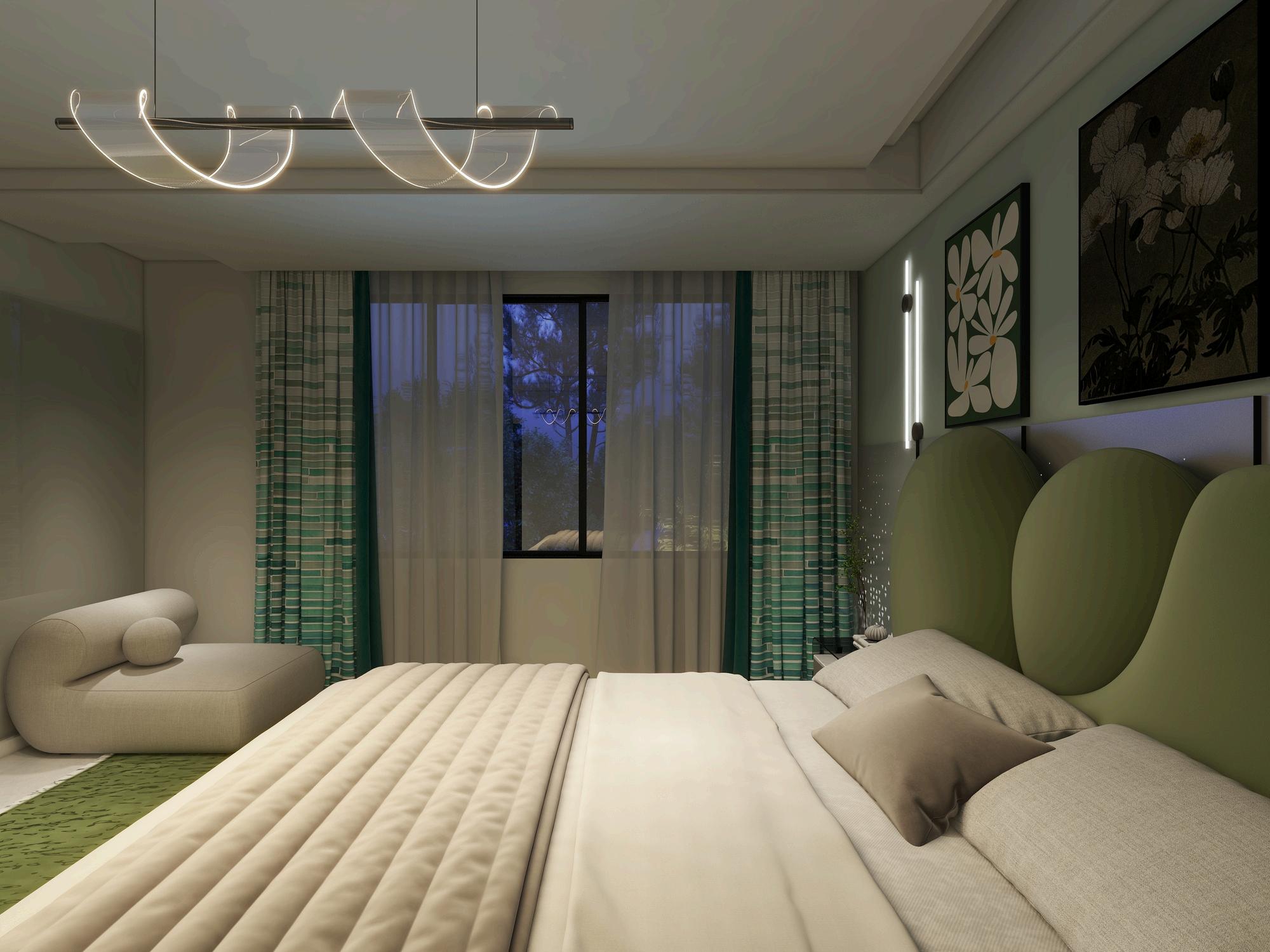 Designedforrelaxationandsleepqualityimprovement. Naturallight,earthycolorpalette,organicfabrics,andsustainablefurniture.