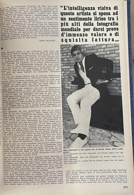 We find a seven-pages section dedicated to Giacomelli as a local artist, texts by Giuseppe Turroni, Piero Racanicchi, Erwin Melchart, Serge Maubec, on pages 211-217, ex-libris Nicola V., who spent the Summer of 1980 at the Hotel de la Ville