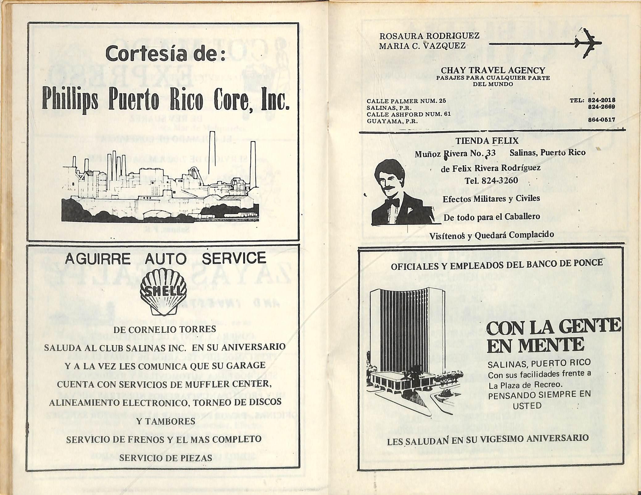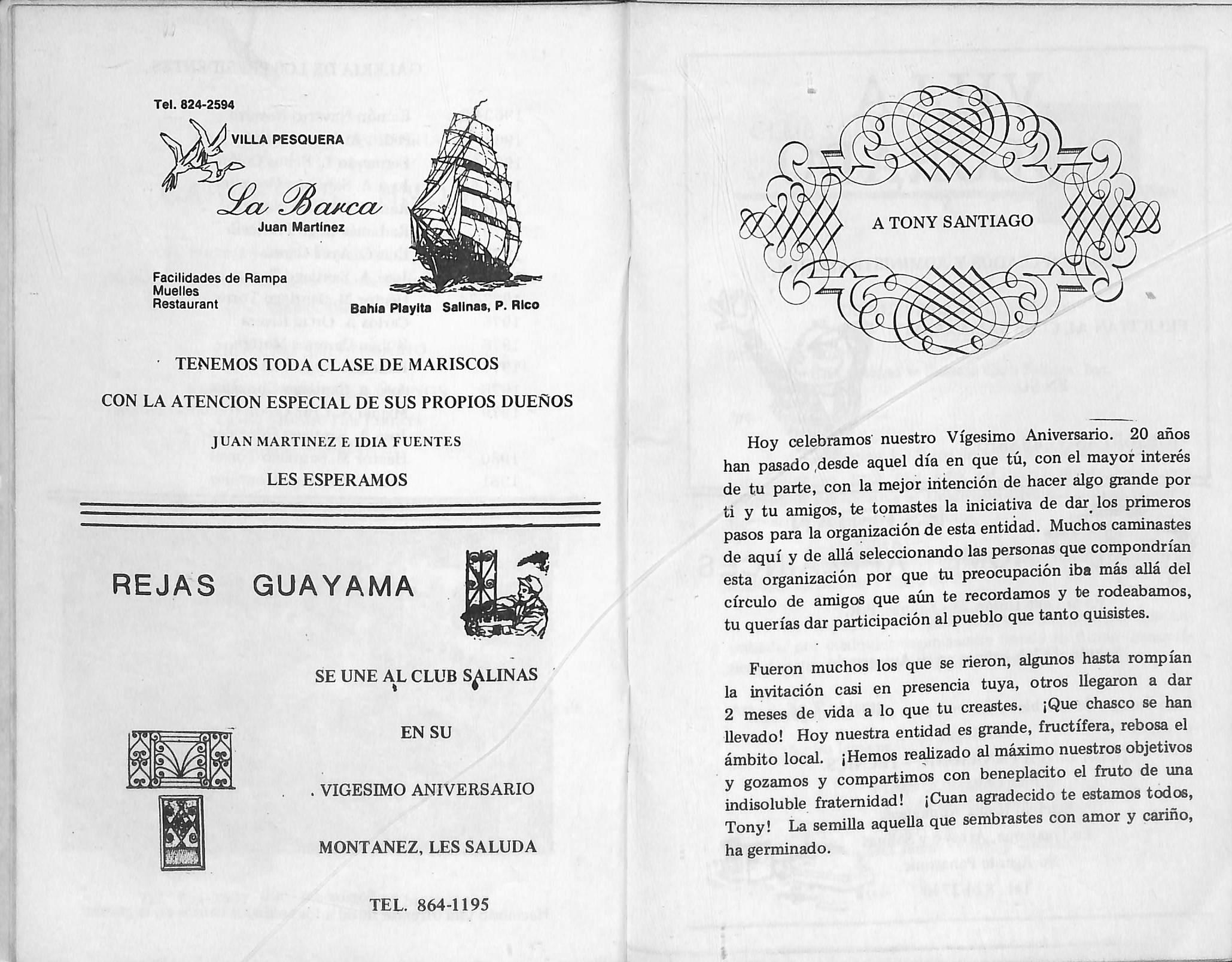 En la calle Muñoz Rivera, Felicita al Club Salinas Inc. en su VIGESIMO ANIVERSARIO