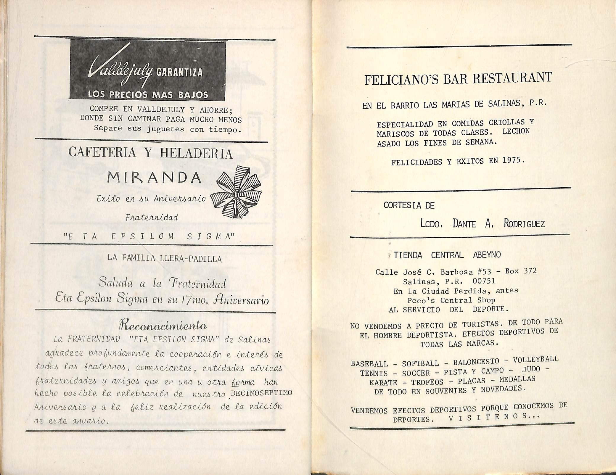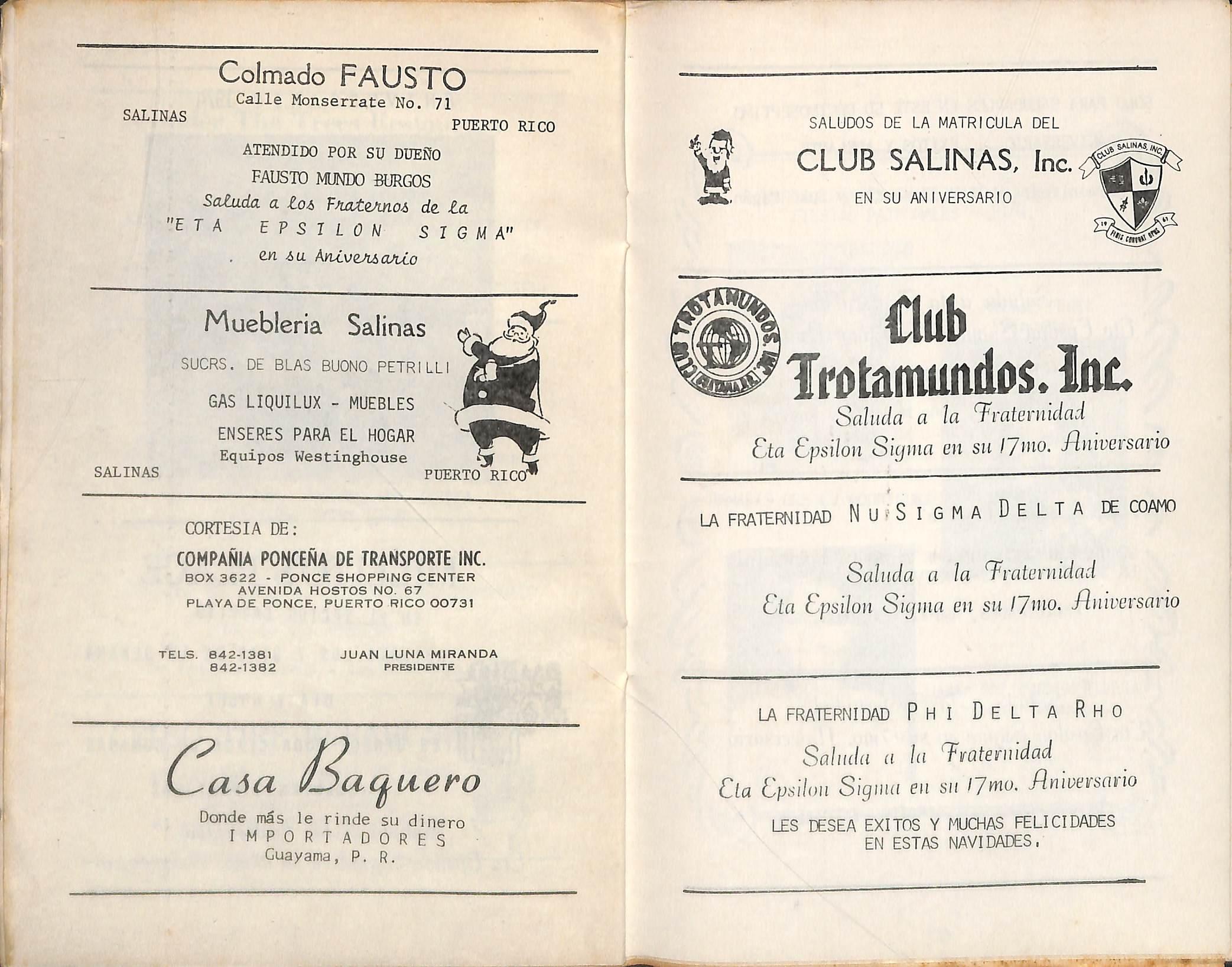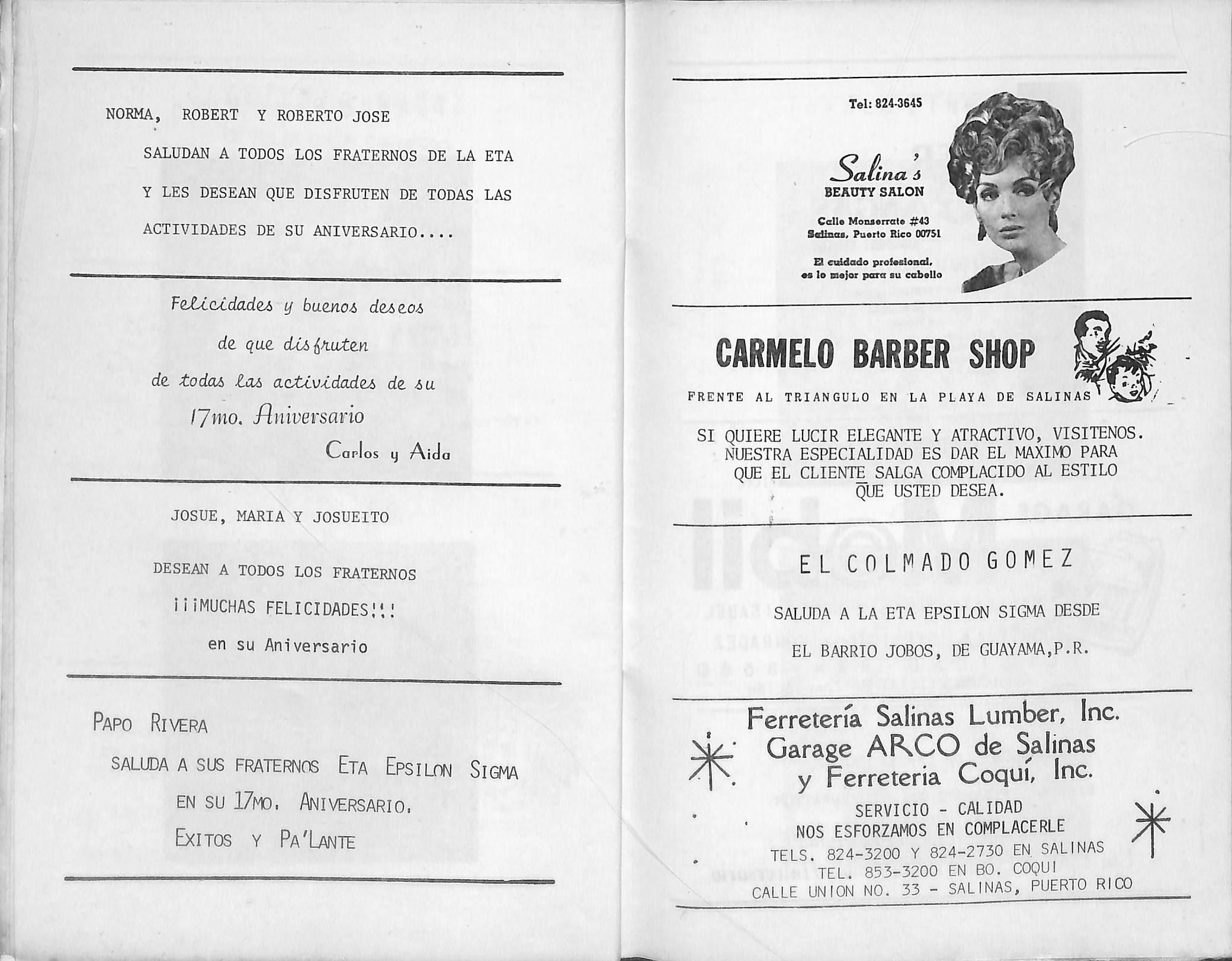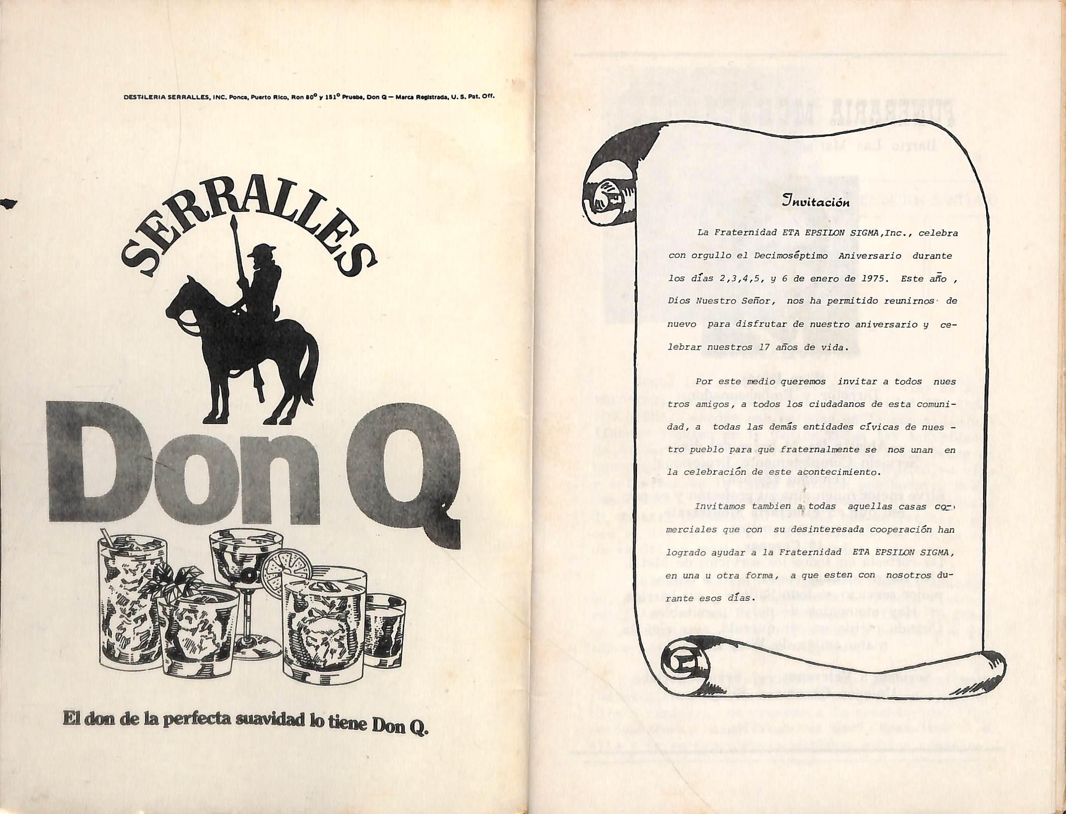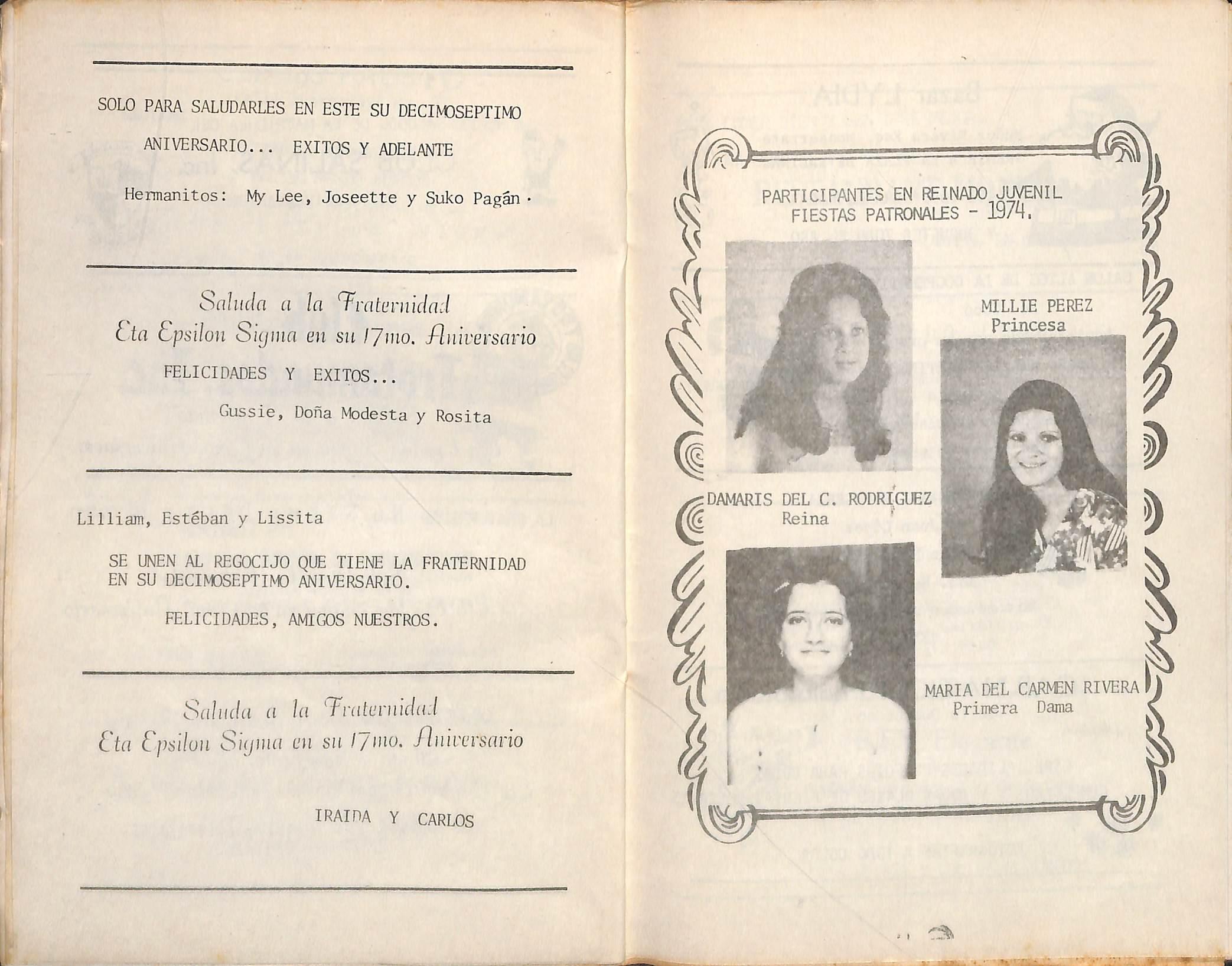 La Fraternidad ETA EPSILON SIGMA,lnc., celebra con orgullo el Decimoséptimo Aniversario durante los días 2,3,4,5, y 6 de enero de 1975. Este affo , Dios Nuestro Señor, nos ha permitido reunimos- de nuevo para disfrutar de nuestro aniversario y ce lebrar nuestros 17 años de vida.