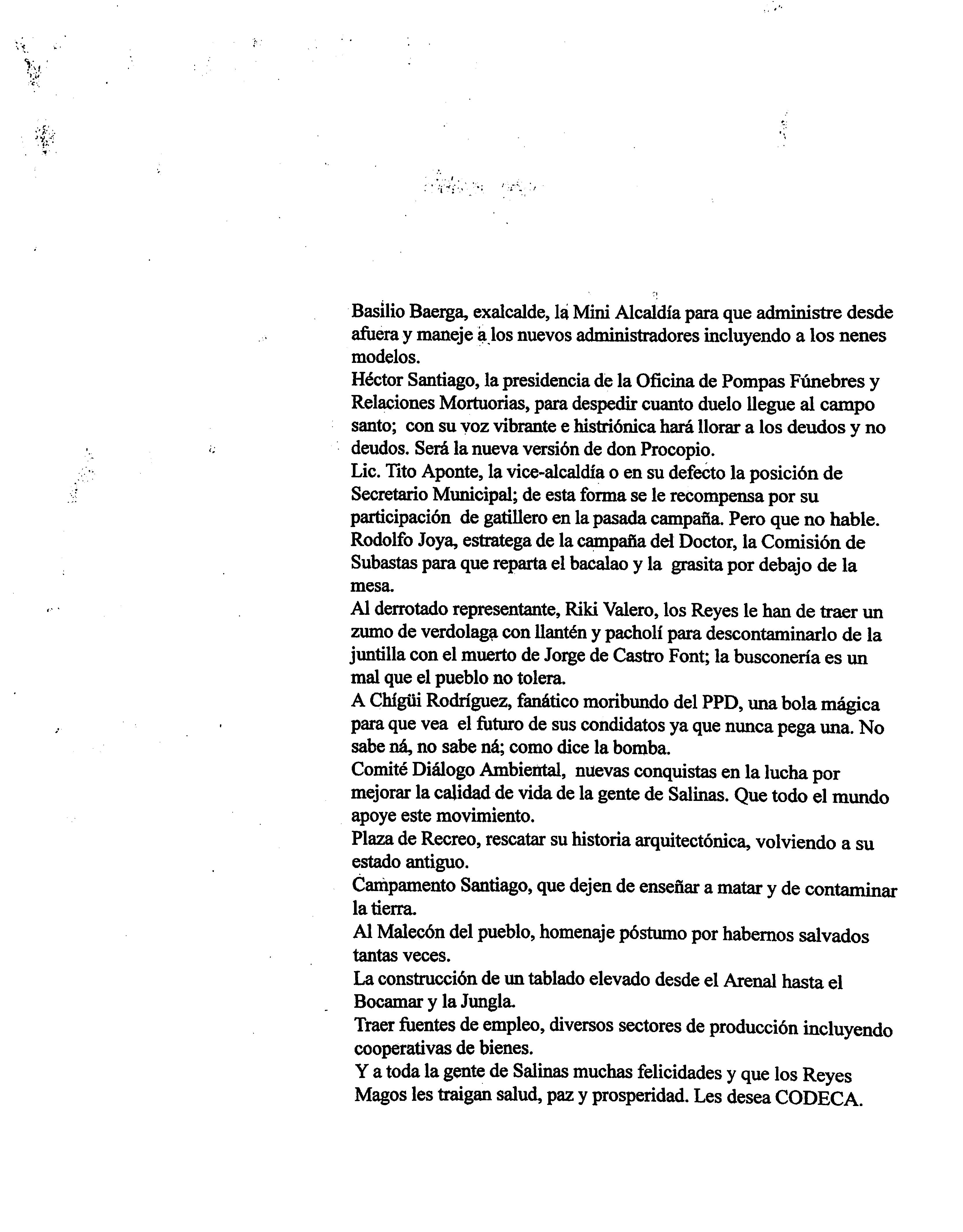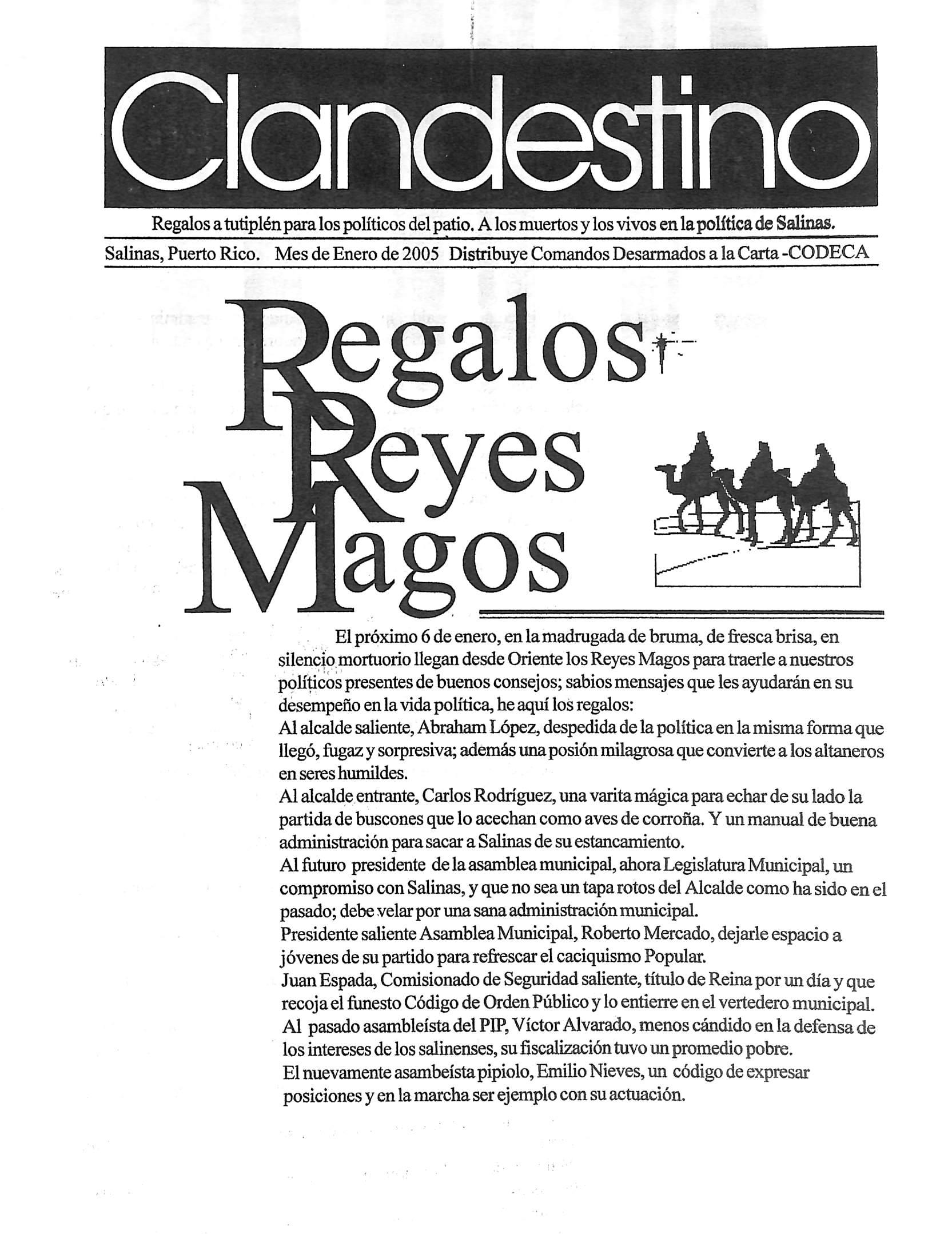 Salinas,Puerto Rico. Mes de Enero de 2005 Distribuye ComandosDesarmados a la Carta-COPECA