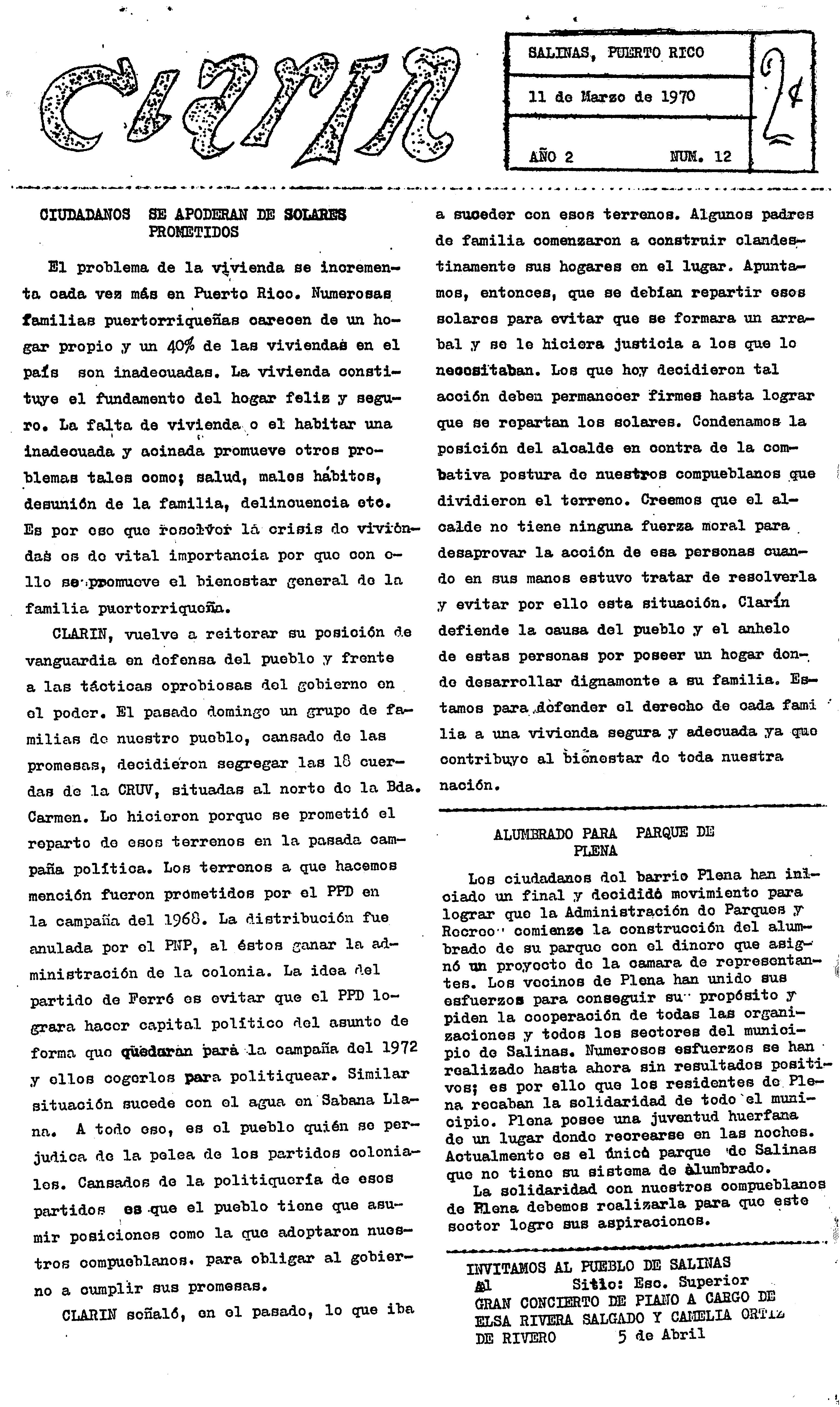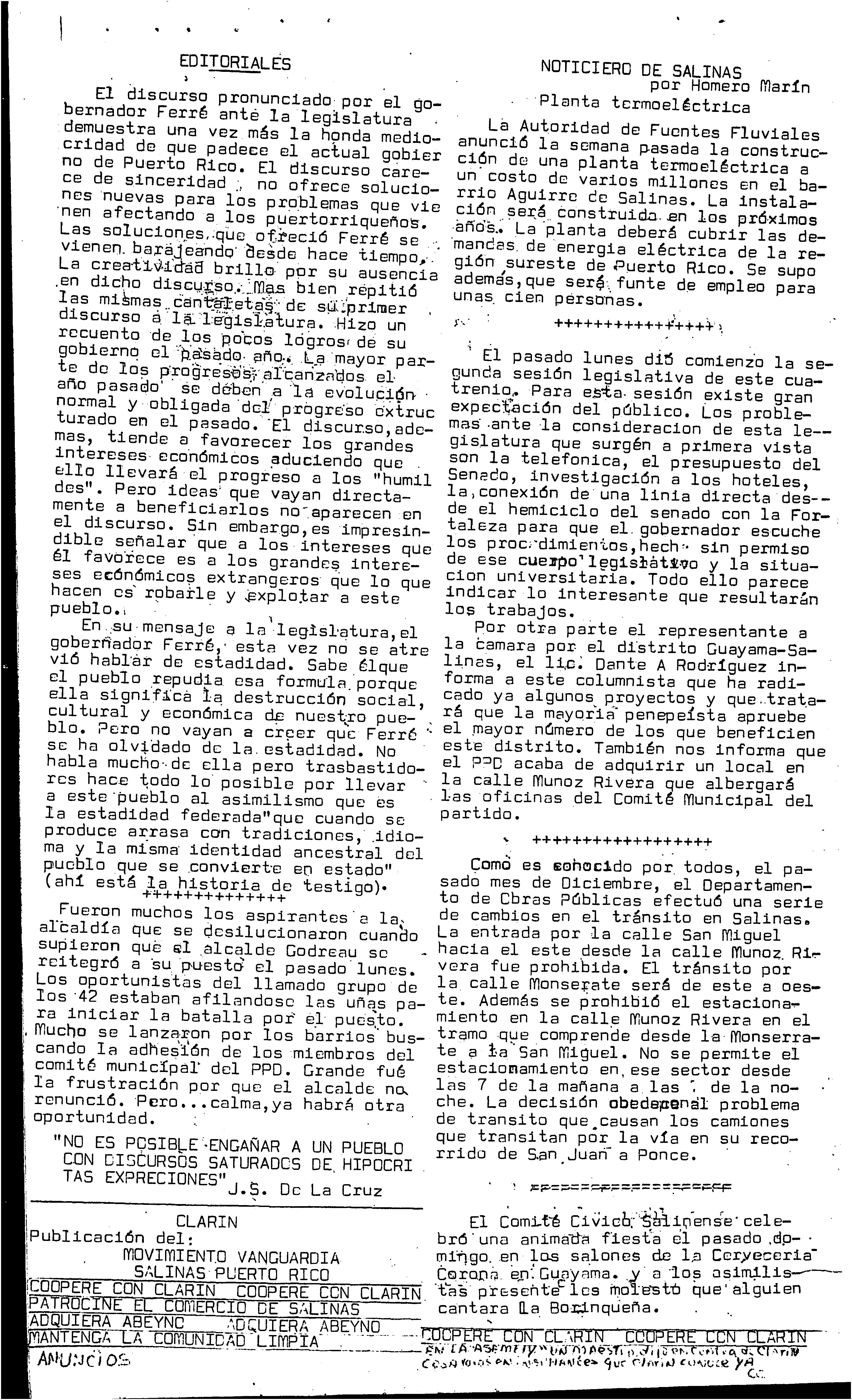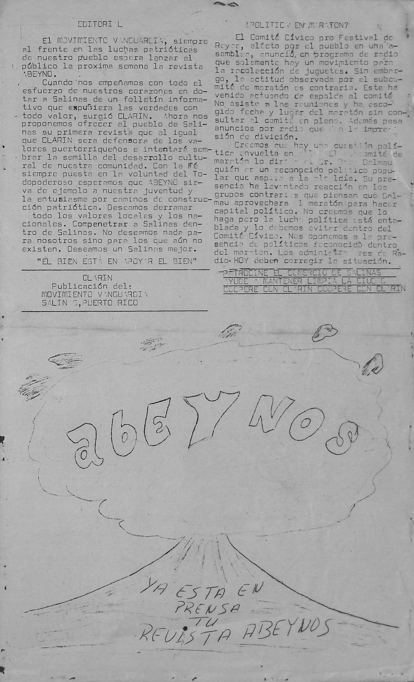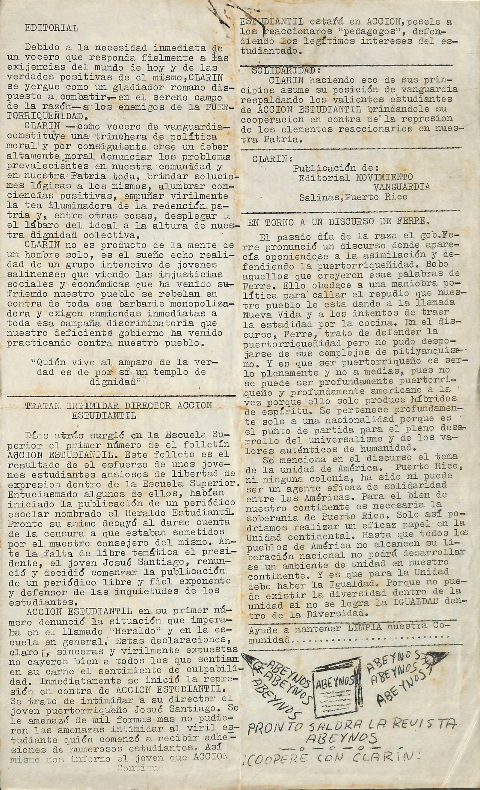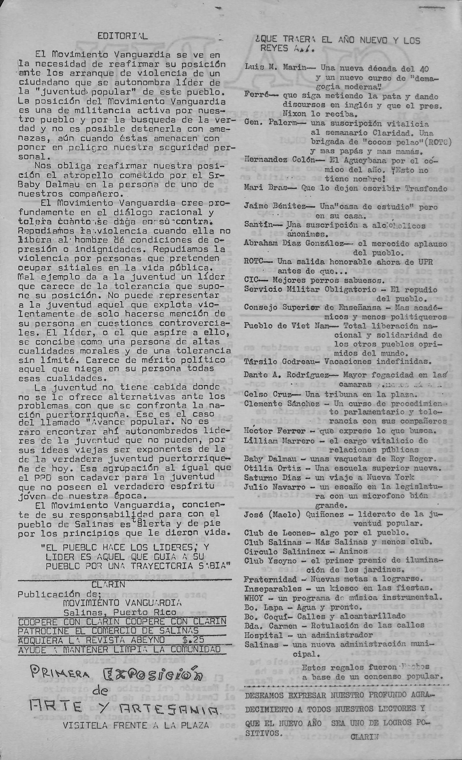 Clarin (1969-1970) : Boletin del Movimiento Vanguardia