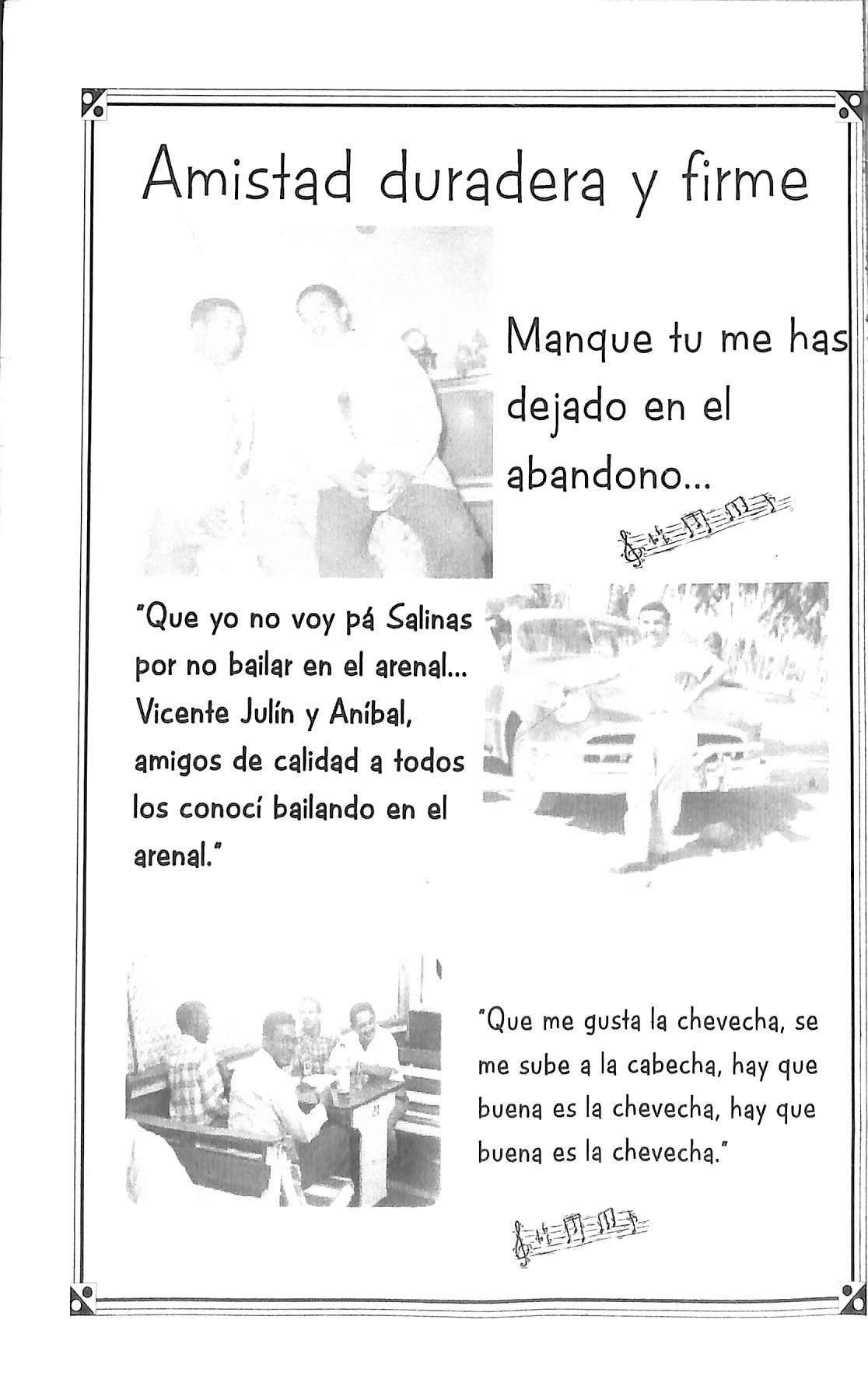 'Que yo no voy pi ¿aliñas , por no bailar en el arenal... ' Vicenle Julín y Aníbal, a amigos de calidad a iodos üj los conocí bailando en el ^ arenal.'