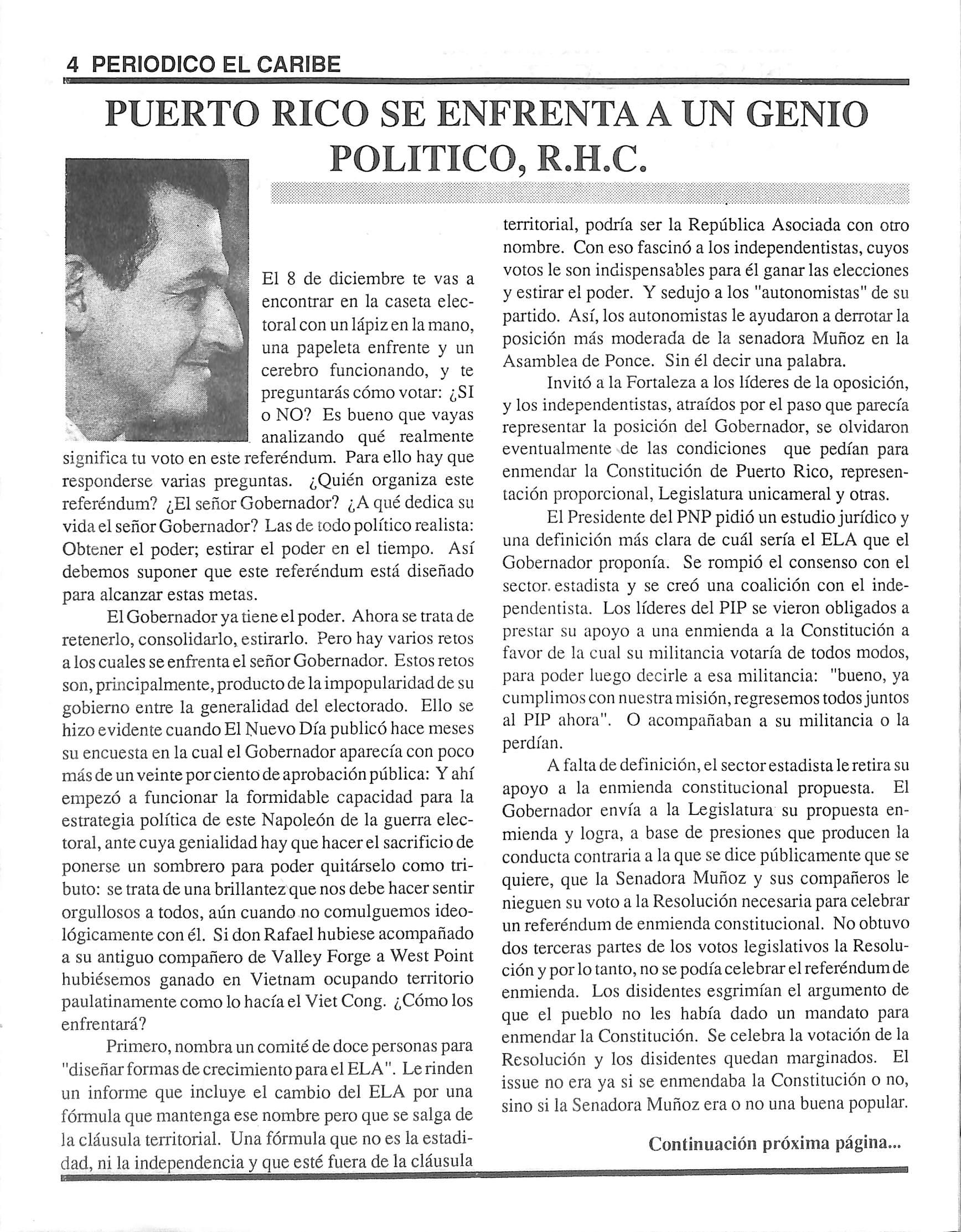 y su Presidente "Chepito" Caraballo, durante el mes de octubre saluda al Movimiento Cooperativista de P.R. y les exhorta a toda la ciudadanía que se unan a este movimiento.