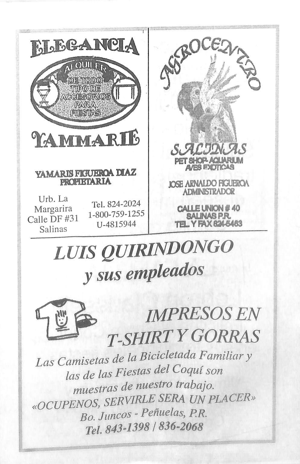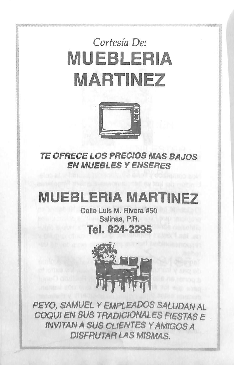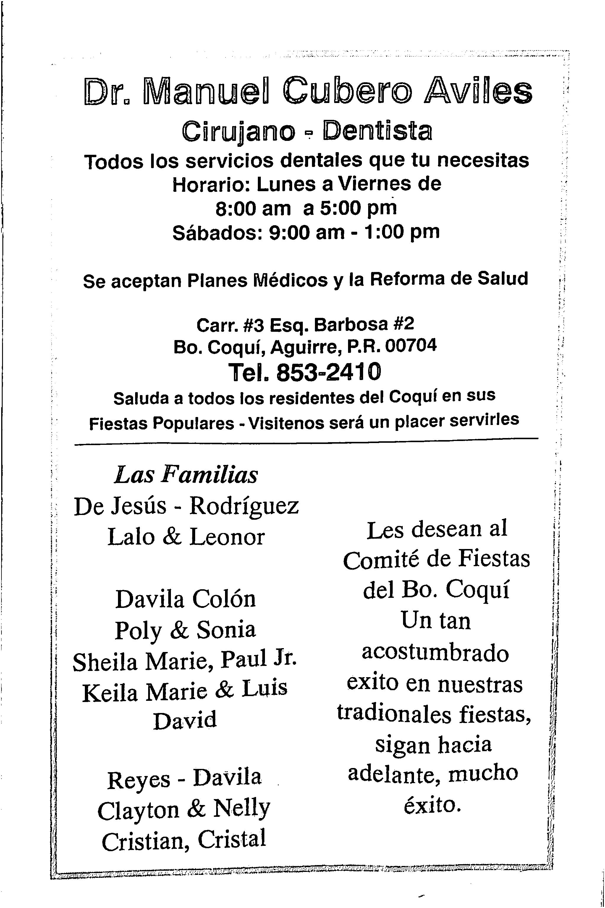 Yuyo, Esther, Javao, Jossie, Vilma, Tita, Edgar, Gul y Monchin. Saludan al Coquí en sus tradicionales fies tas y les desean mucho éxito al Comité de Fiestas Coquí Inc.