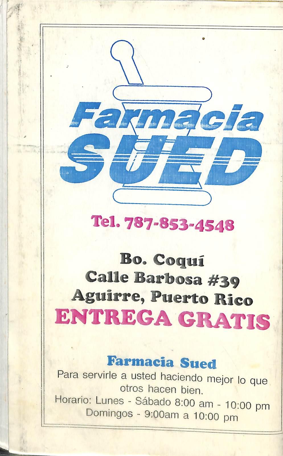 Le invitamos a que visite ésta su Farmacia, donde podrá encontrar, un amplio y rnodemo recetario,contamos con departamento de perfumería,cosméticos, artículos para bebé, minímarket,servicio de íotocopiadora,fax y fotorevclado.