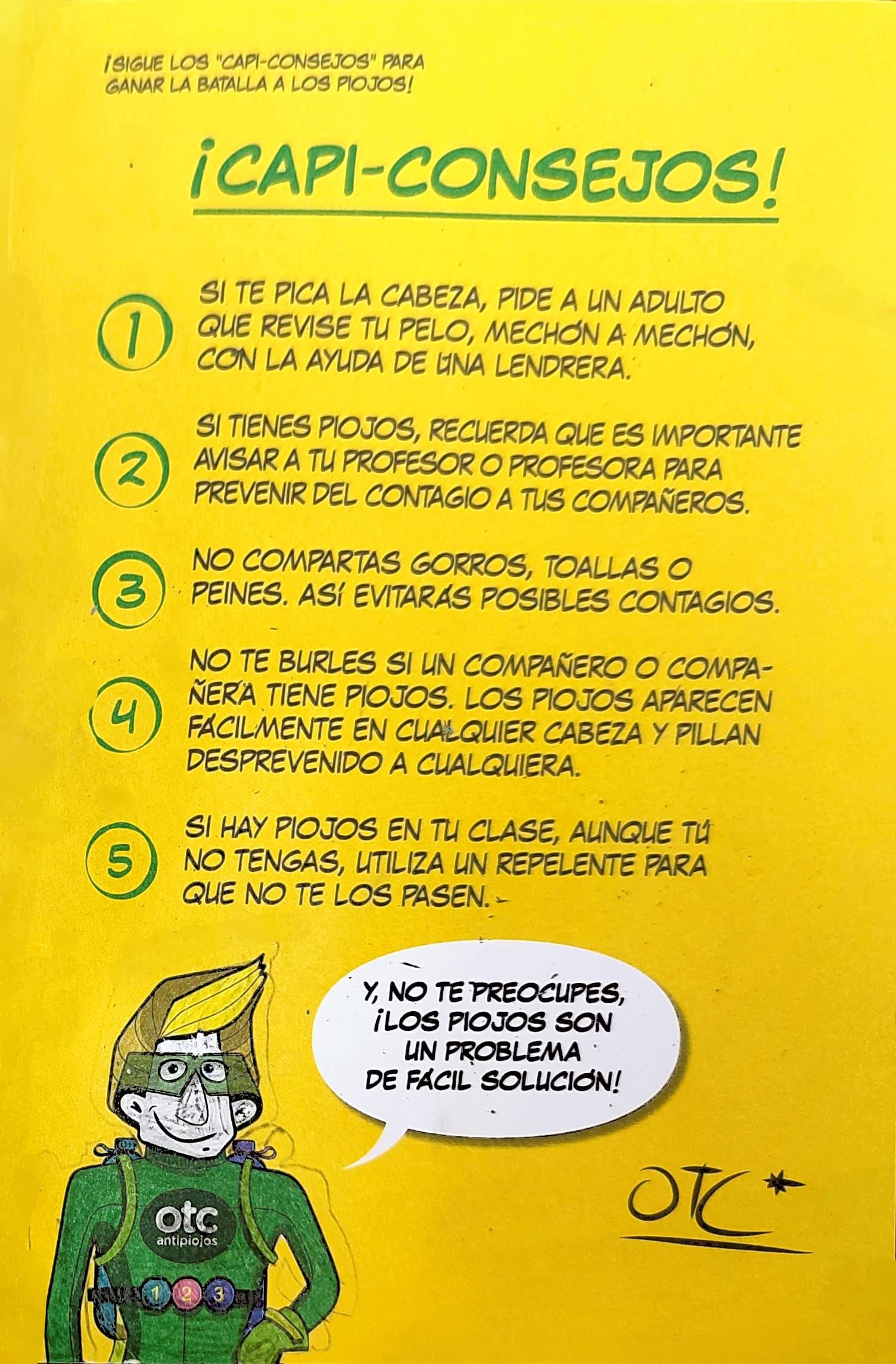 SI HAY PIOJOS EN TU CLASE, AUNQLE Tu NO TENGAS, UTILIZA UN REPELENTE PARA QUE NO TE LOS PASEN. y NO TE PREOCUPES, iLOS PIOJOS SON UN PROBLEMA DE FACIL SOLUClON!