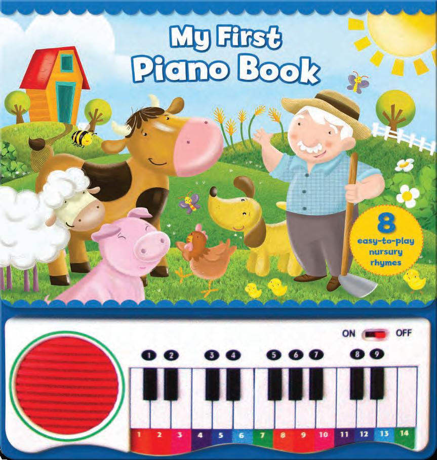 Anyone can play their favorite melodies on this electronic piano. Just choose the song you want to play and press the keys that match the colored number of the note above each word.