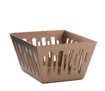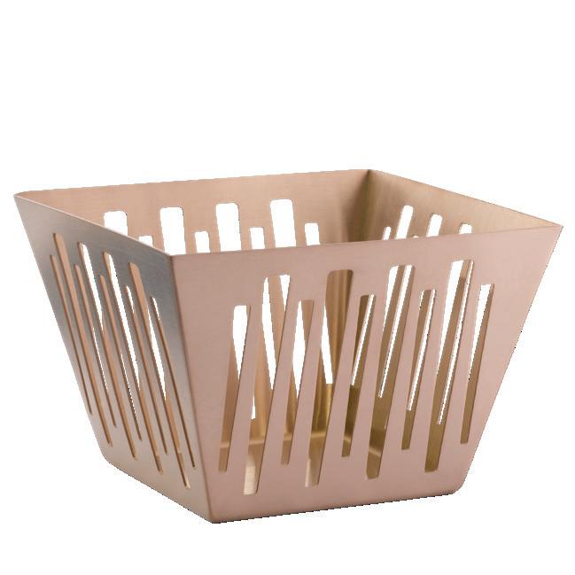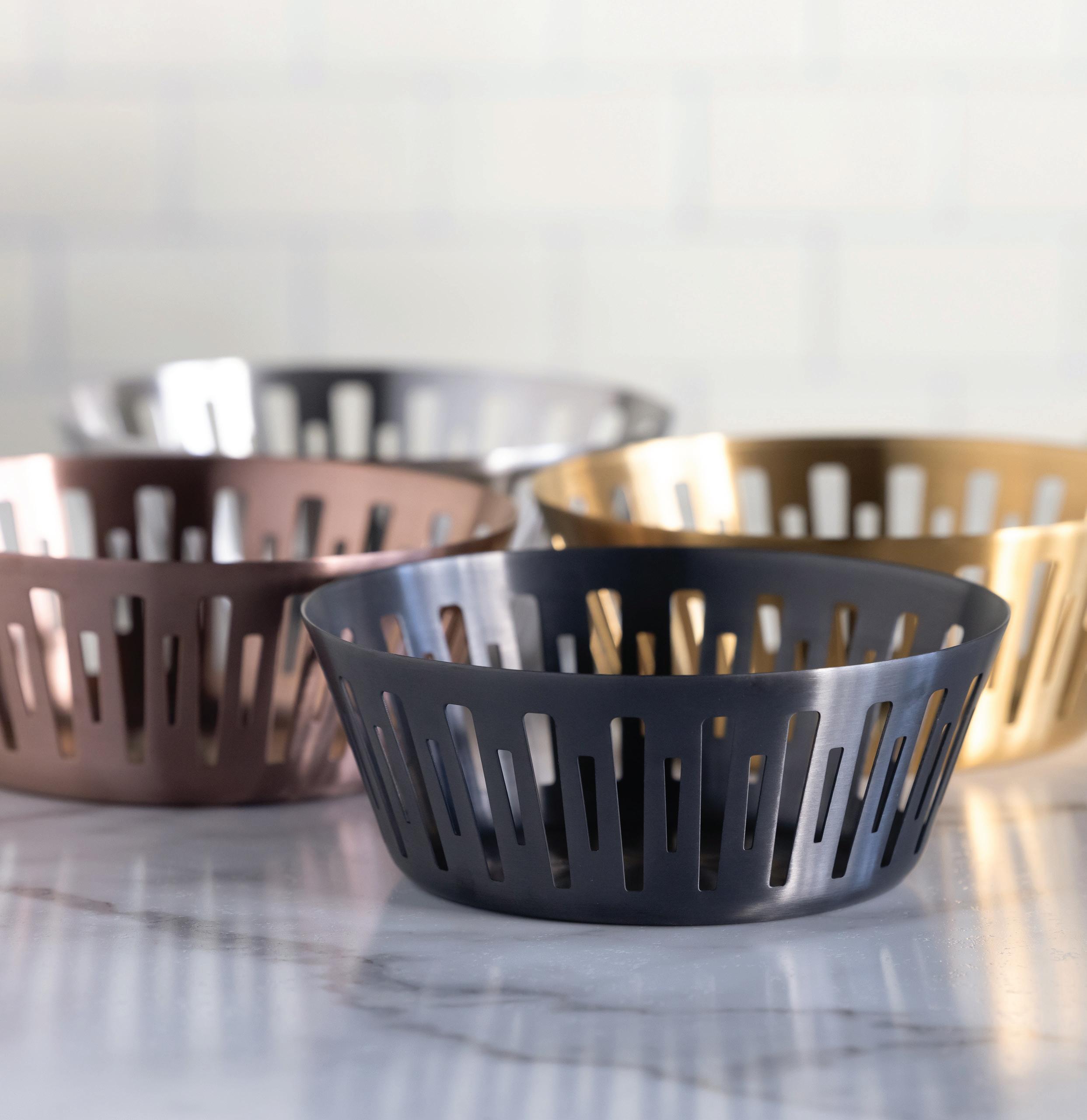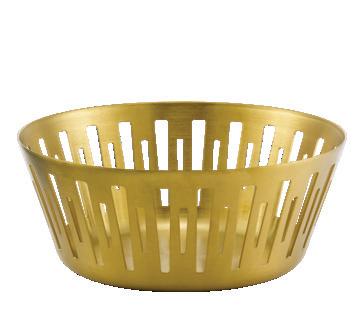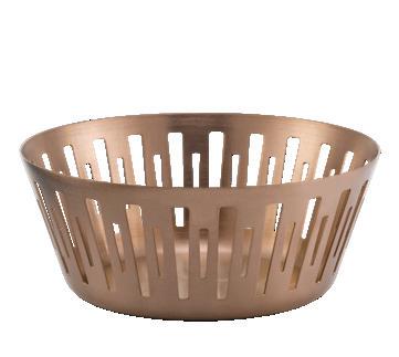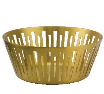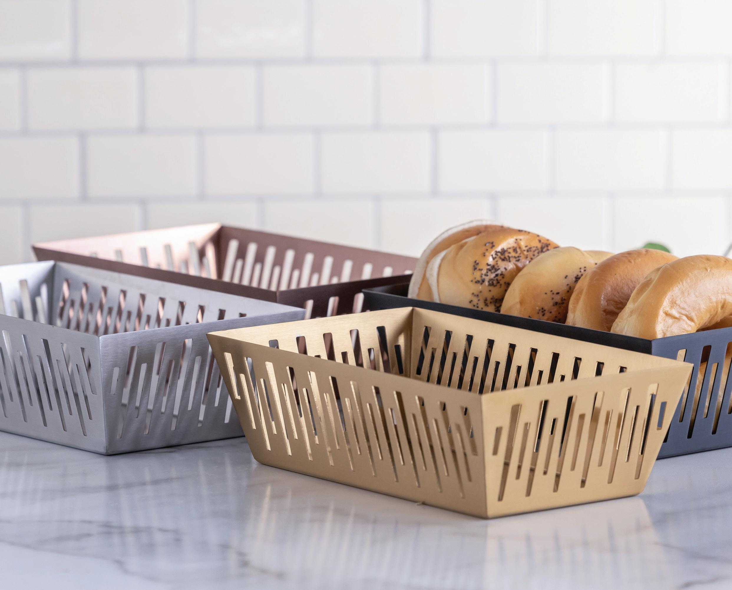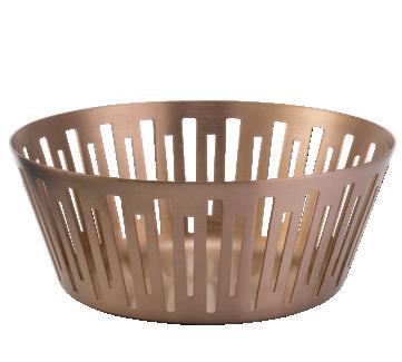 The Mod18 Steelworks Deco Baskets combine timeless Art Deco flair with the durability of stainless steel, creating a stunning tabletop accent for foodservice settings. Featuring a lasercut sunburst pattern, these baskets bring bold style to bread service, shared appetizers, or snack displays. The sturdy construction stands up to daily use, while the intricate design adds an upscale touch. All styles are available in Metallic Elements finishes— Rose Gold, Vintage Gold, and Black Onyx—offering a striking, customizable look for any presentation.