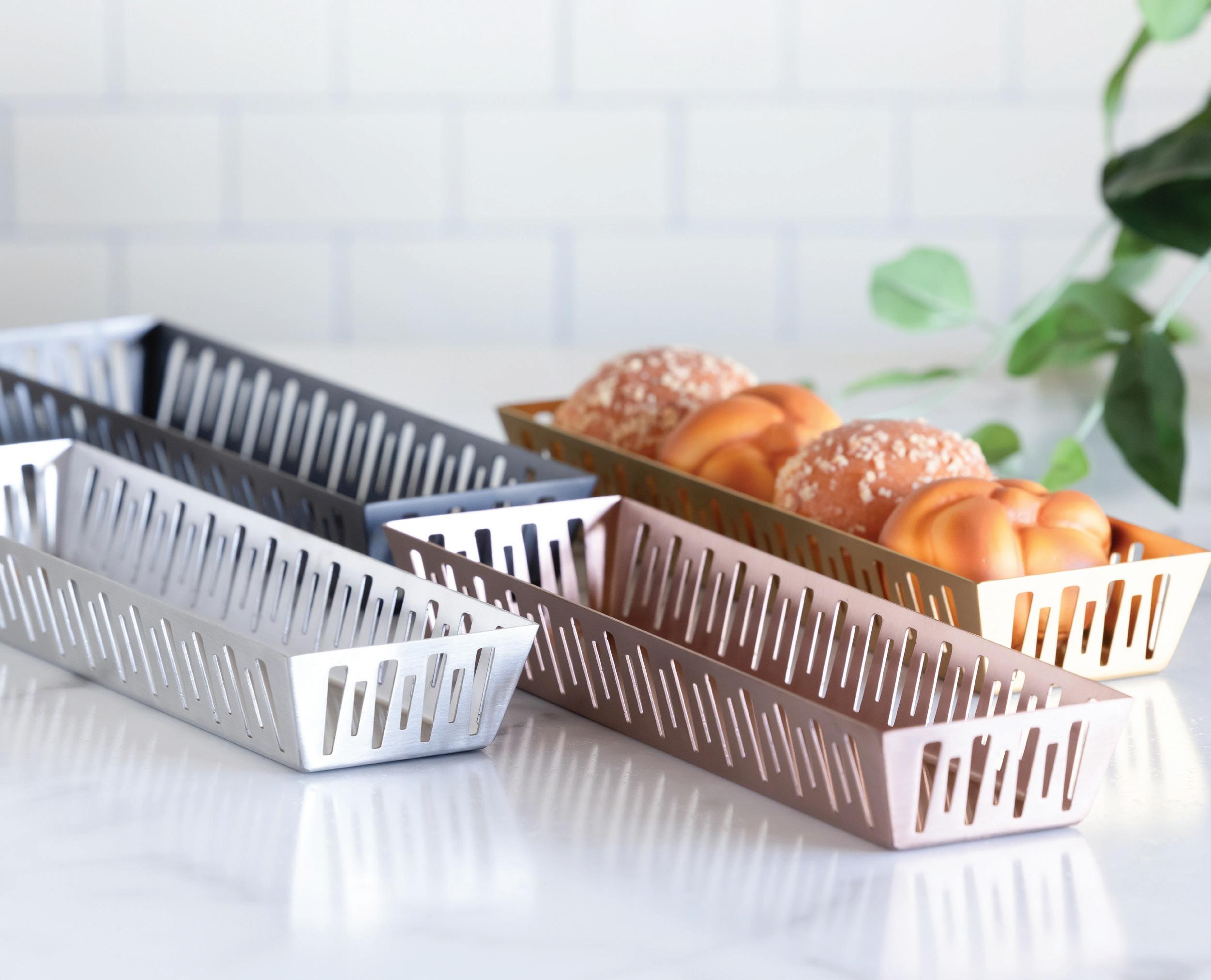 The Mod18 Steelworks line features premium stainless steel baskets, trays, and tabletop accessories built for modern foodservice. Each piece combines clean design with lasting durability, offering a polished solution for serving bread, organizing condiments, or enhancing buffet presentations.