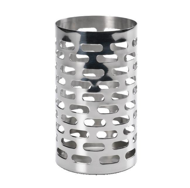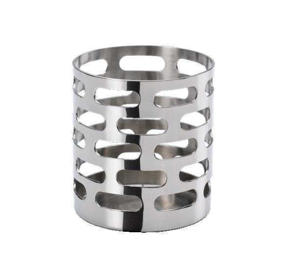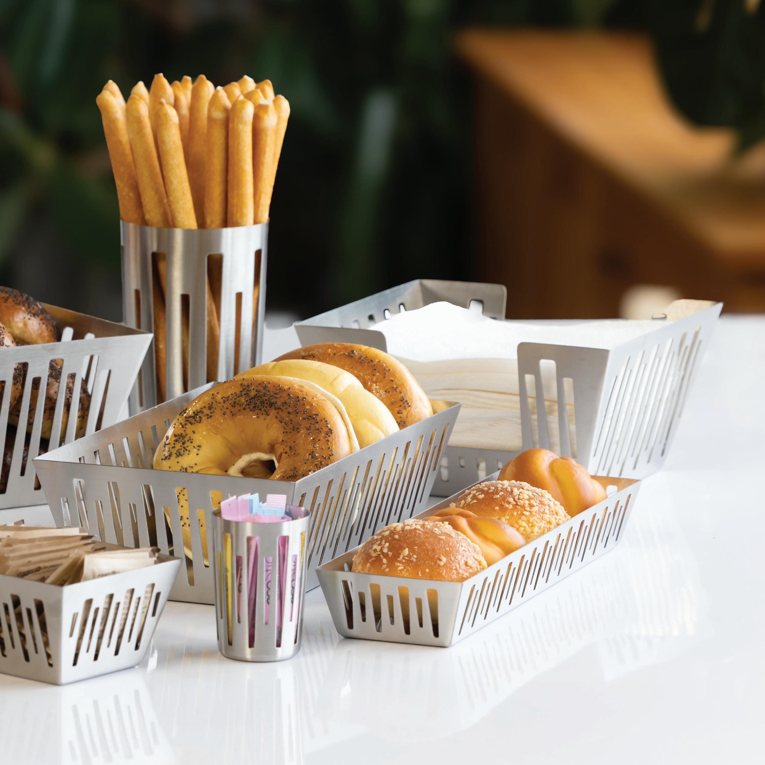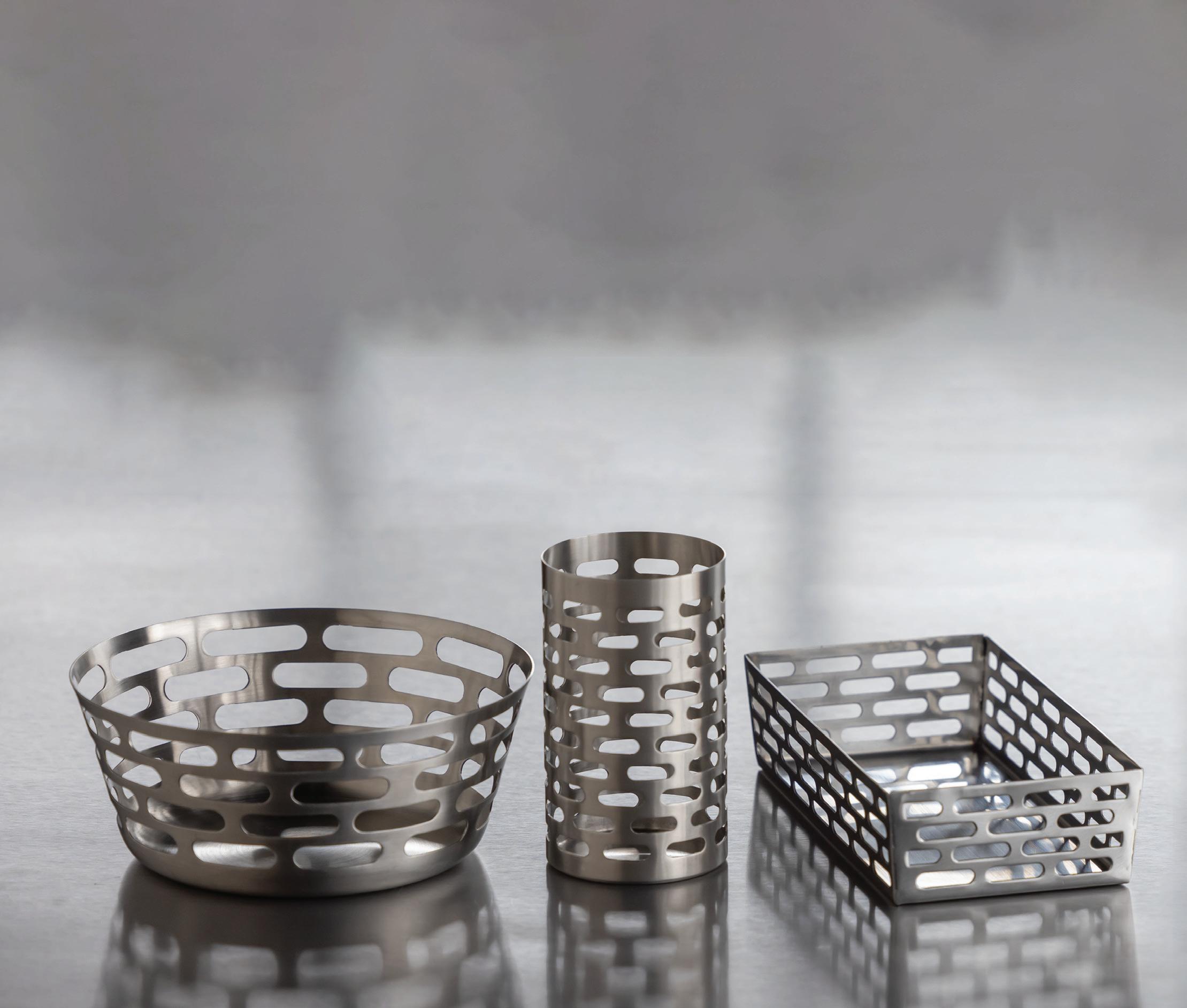The Mod18 Steelworks Original Collection features stainless steel baskets, condiment holders, and snack bowls designed with a signature perforated laser-cut pattern. Clean lines and minimalist forms give this collection a modern edge, while the precision-cut detailing adds visual interest without overpowering your presentation. Available in brushed and polished stainless steel, each piece is crafted for durability in busy foodservice settings—offering a refined way to serve, organize, and display with style and efficiency.