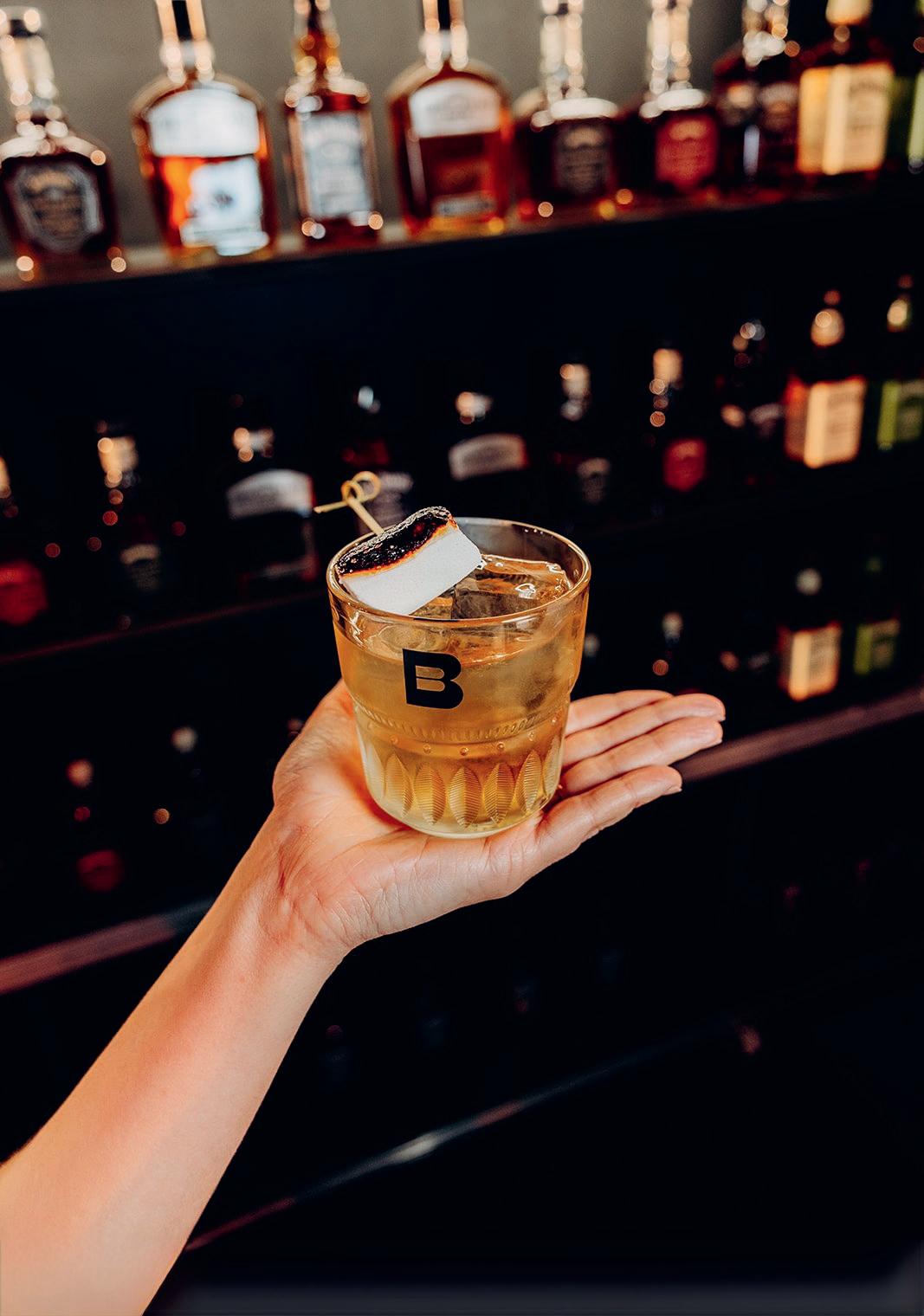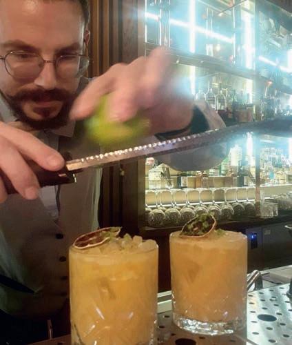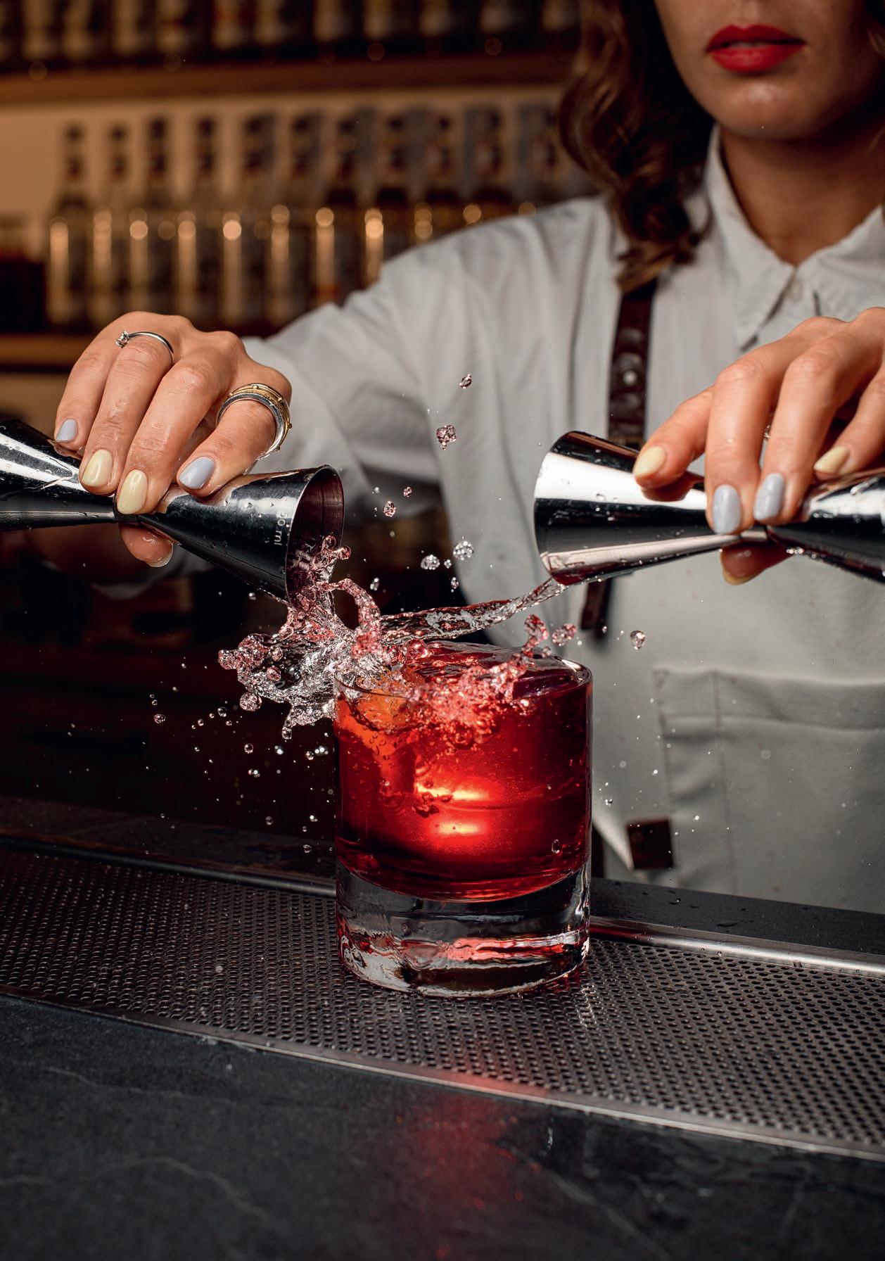 Hoewel de klassieke Basil Smash populair blijft bij Bagheera, ziet Alpha ook een nieuw fenomeen: de alcoholvrije trend trekt consumenten aan die op zoek zijn naar welzijn, gedreven door de bewustwording na corona. ‘De mensen willen goed voor zichzelf zorgen. Er is een on gelooflijke groei in kombucha, matcha, maca... We zitten echt in een healthy dy namiek.’ Alpha neemt dit ook waar in de gewoonten van zijn buren van het Ter kamerenbos: ‘Elke avond zie ik groepen joggers stoppen voor een kombucha.’ Hoewel de mixologiewereld al tien jaar volop in ontwikkeling is, betreurt hij nog steeds het gebrek aan onderwijs in de cocktailcultuur in onze hoofdstad: ‘De cocktail komt uit de Angelsaksische we reld, meer bepaald uit Amerika. In België houden we vooral van bier en wijn, maar nog niet zoveel van cocktails. We moe ten blijven innoveren, opleiden, investe ren, communiceren.’ Volgens hem geven steden als Antwerpen of Veurne het goe de voorbeeld, dankzij een goed verankerde cocktailcultuur. ‘Vlamingen hebben echt oog voor detail. De mixologen in Antwerpen zijn inspirerende makers.’ En hij voegt daaraan toe: ‘Naar mijn mening is het beste bedrijfsmodel voor een bar dat met maximaal 30 plaatsen, wat een menselijke band met de klanten mogelijk maakt.’
