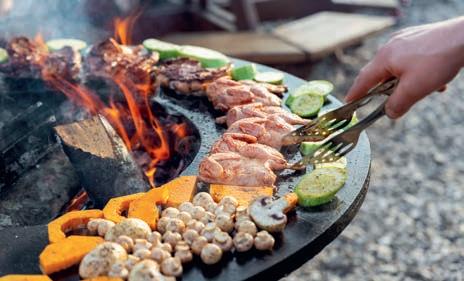 Zo’n toestel bevat een grote kegelvormige vuurschaal met een brede, platte rand die je als bakplaat/plancha gebruikt. De kegel ligt op een hoge sokkel. De bakplaat biedt verschillende temperatuurzones aan, afhankelijk van de afstand tot het vuur. Het toestel werkt zowel op hout als op houtskool. Je kunt er vlees, vis, groenten en zelfs eieren of pannenkoeken op bakken. In het midden kan een opzetgrill worden geplaatst voor directe grillbereidingen.