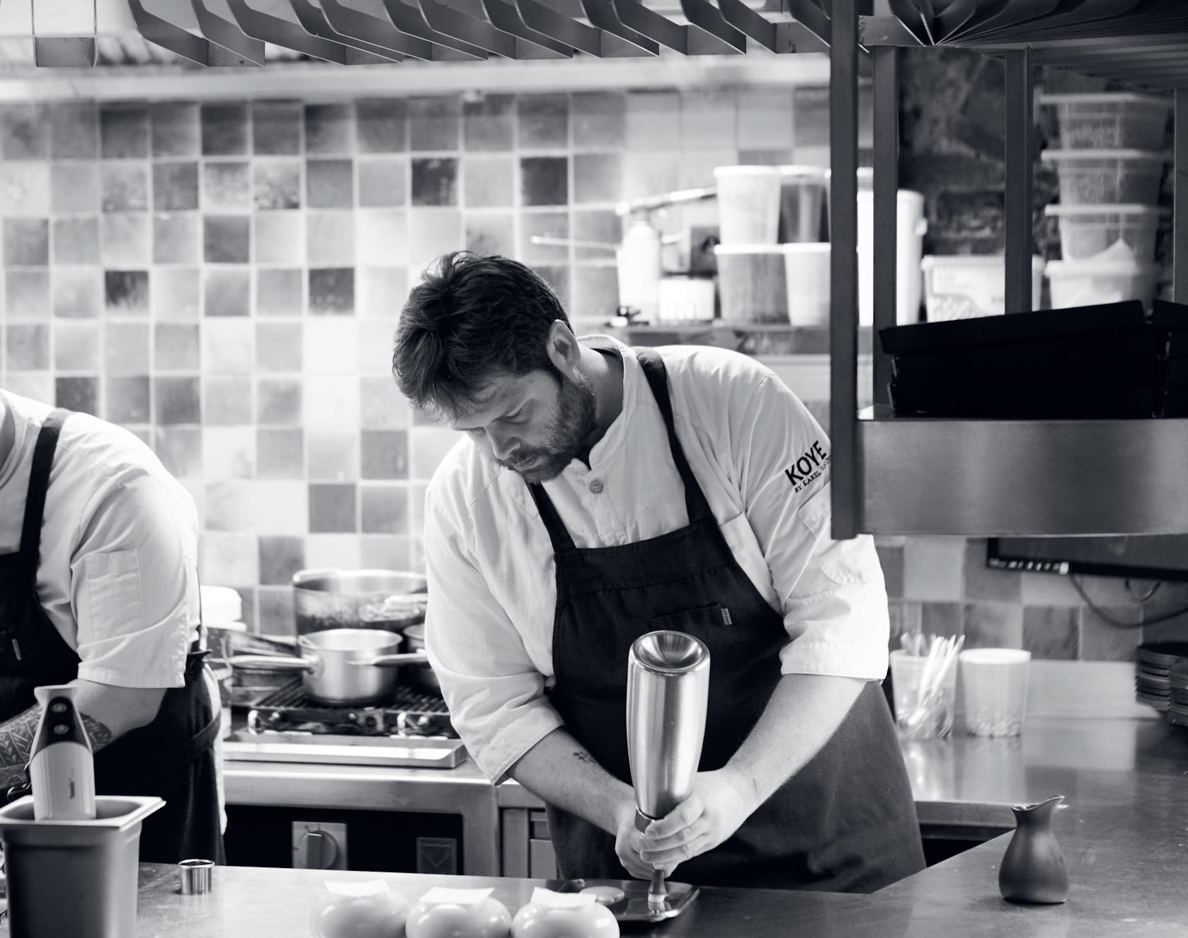 Zijn signature cocktail, de Chairman’s Martini, is een briljante herinterpretatie van de Porn Star: wodka, perenpuree, passievrucht en gerookte karamelsiroop. ‘Het is rond, fruitig en getextureerd. Het laat een blijvende indruk achter. ‘
