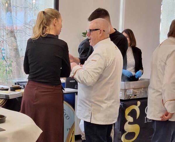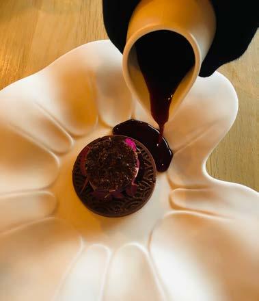 Het bord dan. Het try-out lunchmenu in het kader van de Eerste Kok van België wedstrijd bestond uit een vegetarisch voorgerecht van vacherin Mont d’Or met witloof en schorseneer, kabeljauw met coquille en eekhoorntjesbrood, en als dessert een Noir Vietnam 73% forêt noir-amarena bereiding. Dit dessert werd mooi gepaird met een te ontdekken Recioto della Valpolicella DOCG 2021 van de Cantina di Monteforte d’Alpone, verkrijgbaar bij het Waregems wijnhuis www.orovino.be