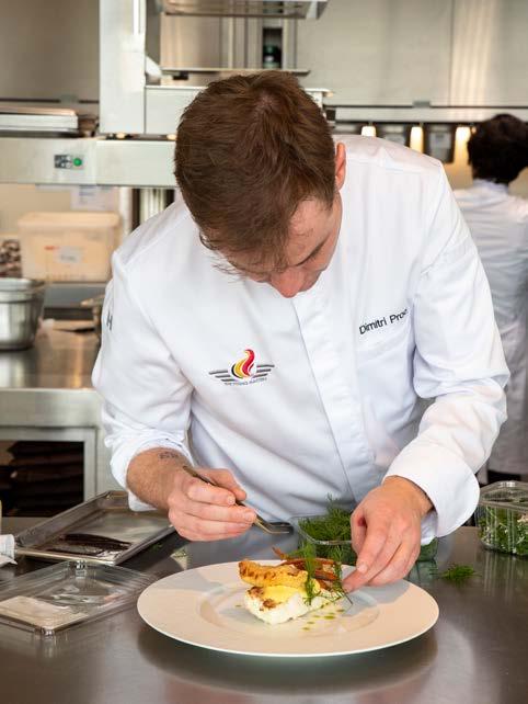 Dimitri beoefent zijn kunst in de keuken van restaurant HAUT op de 28ᵉ verdieping van de Sky Tower One in Oostende. Het restaurant biedt een adembenemend uitzicht en is al een bestemming op zich voor veel gasten, maar deze laatsten zijn vooral onder de indruk van de creaties van de jonge chef, die zeevruchten naar een hoger niveau tilt door ze te bereiden met Aziatische, voornamelijk Japanse invloeden.