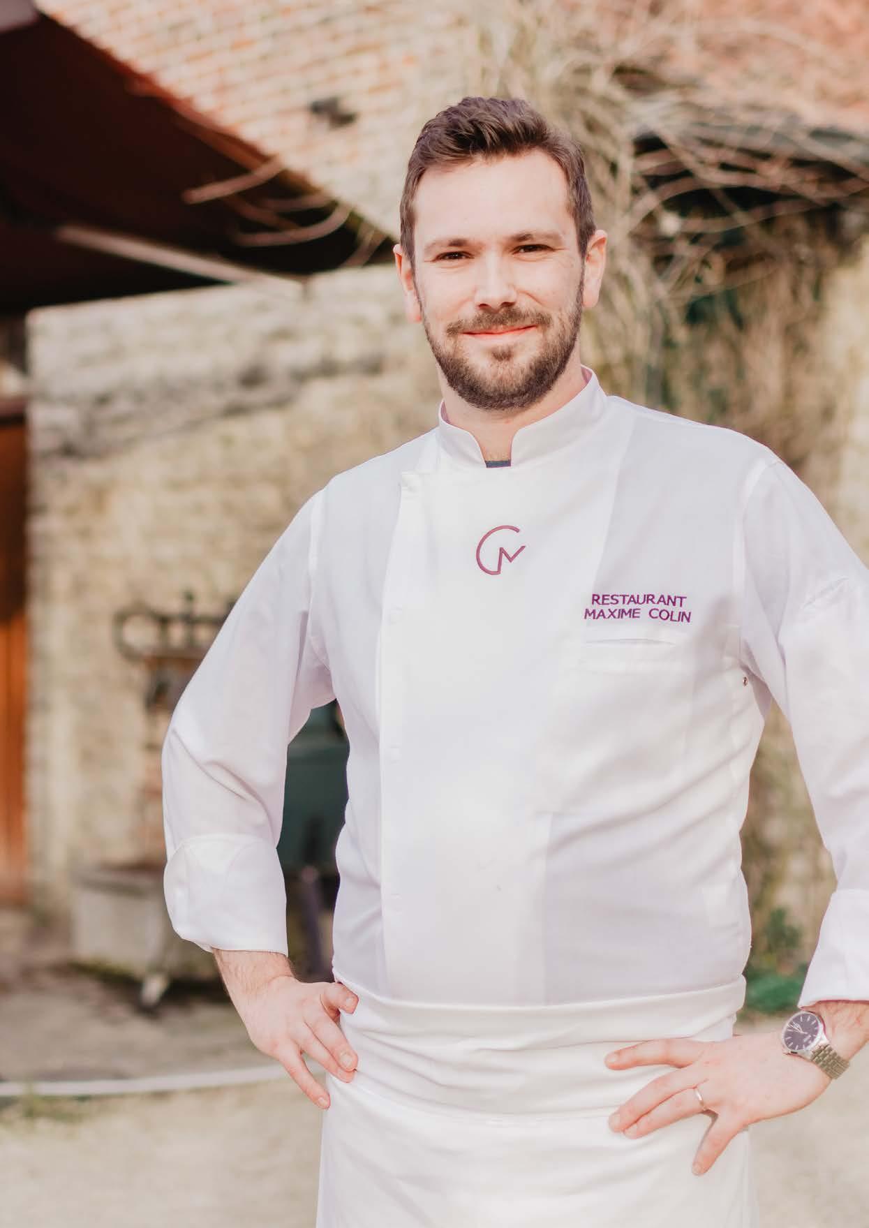 Maxime Colin volgde zijn opleiding tot kok aan hotelschool Cardinal Mercier en koos al vroeg voor een keuken van hoog niveau. Hij deed zijn eerste ervaring op in sterrenrestaurants, met name bij ‘Jaloa’, een vormende ervaring die hem naar eigen zeggen ‘in het zadel hielp’. Daarna vervolgde hij zijn carrière bij ‘Le Chalet de la Forêt’, waar hij twee jaar bleef en een sterke professionele band opbouwde met Alain Bianchin, de toenmalige chef. Die relatie bracht hem bij ‘La Villa Lorraine’, dat Alain Bianchin net had overgenomen. Maxime Colin werkte daar in totaal bijna zes jaar: eerst als rechterhand van de chef, en daarna nam hij zelf de leiding over de keuken gedurende verschillende seizoenen. Tien jaar geleden in maart opende hij zijn eigen restaurant, een plek waar hij zijn persoonlijke kookkunst laat zien, gericht op het product, gevoed door een degelijke klassieke basis en vernieuwd met hedendaagse technieken.
