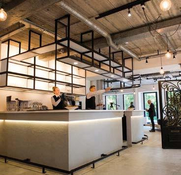 de toegankelijkheid van de zaak, die zich lange tijd als bistro profileerde, benadrukt. Kunstenaar en typograaf Denis Meyers stond in voor een bijzonder fresco op de muur, en zeker vanop het terras heb je een knap zicht op de luxeappartementen die zich om het gebouw gevestigd hebben.