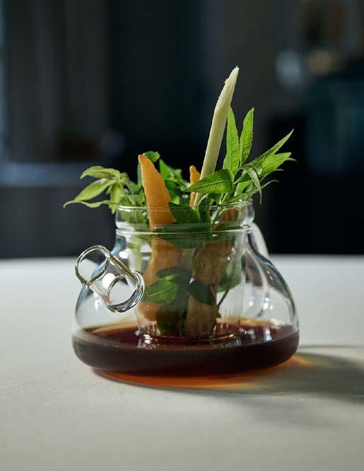 “In het non-alcoholische segment moet je verder kunnen kijken dan enkel waters en frisdranken, aldus de chef. Daarom ook brouwen we inhouse verschillende soorten non-alcoholische sappen, waarbij we het suikergehalte zo laag mogelijk trachten te houden. Voor elk gerecht is er een non-alcoholische pairing mogelijk.
