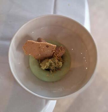 Die herinnering komt regelmatig terug in zijn keuken. Onlangs koos Maxime Colin er nog voor om tapioca te verwerken in een consommé van duivenvleugel, geserveerd met een gekonfijte bout en kleine paddenstoelen. Tapioca krijgt dan zijn oorspronkelijke functie terug: binden en textuur geven zonder de smaak te verhullen.