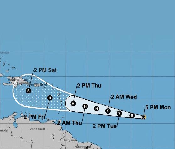 Trayectoria. El CNH solicitó a las personas en el Caribe y Puerto Rico a seguir de cerca el desarrollo del sistema y tener listo su plan de emergencia. / NOAA