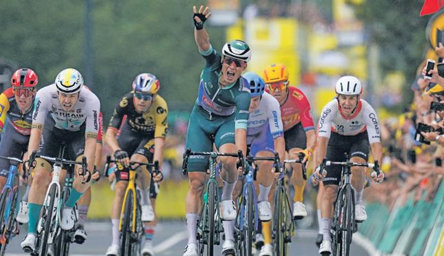 MOULINS El velocista belga Jasper Philipsen consiguió el miércoles su cuarta victoria en una etapa en el Tour de Francia de este año y con lo que llevó a seis victorias en su carrera. Incluso sin la ayuda del líder Mathieu van der Poel, el ciclista de Alpecin–Deceuninck demostró ser el más fuerte en el frenético kilómetro final de la etapa 11 entre Clemont Ferrand y Moulins en la parte central de Francia. Van der Poel no formó parte del sprint y Philipsen navegó entre el tráfico que promedió 65,6 kilómetros por hora en el último kilómetro para unirse a Mark Cavendish como el único ciclista activo en ganar al menos cuatro etapas en un mismo Tour. -AP